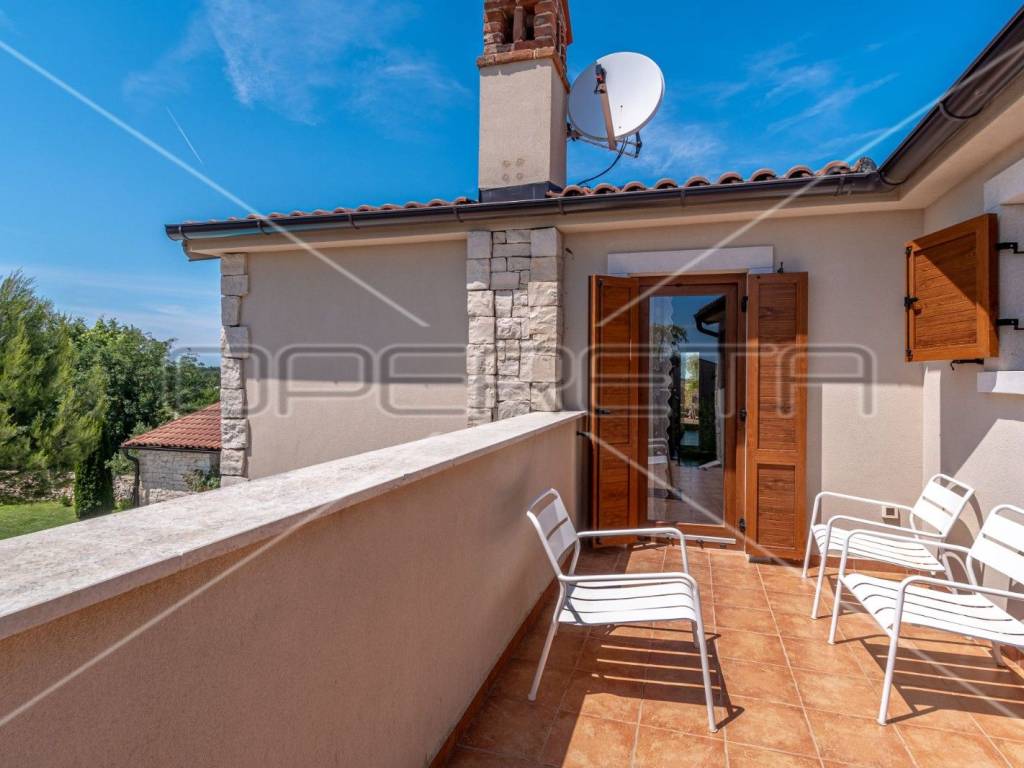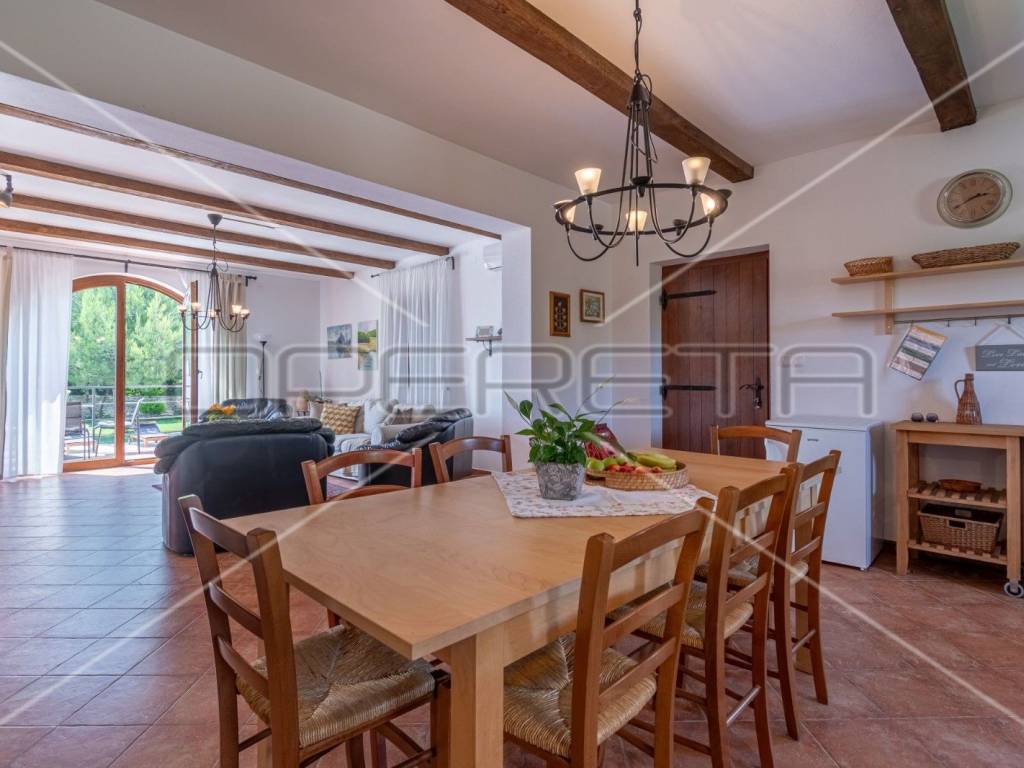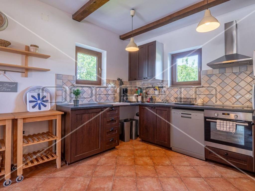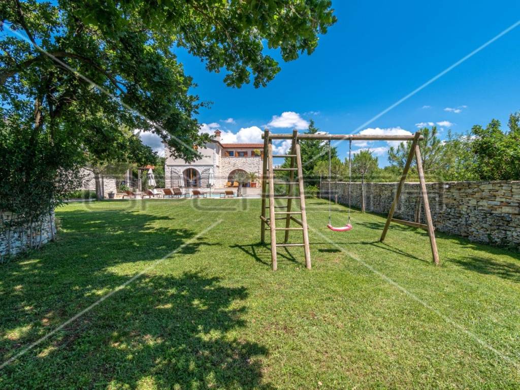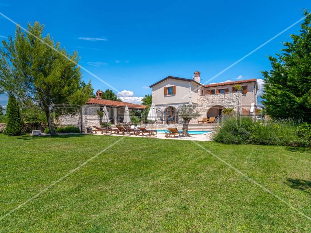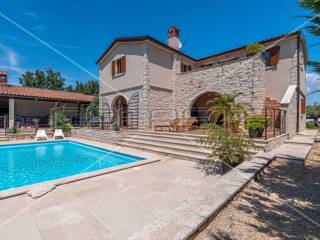 Istria, in one of the settlements of the Municipality of Svetvinčenat, in complete peace, surrounded by nature, this impressive villa built in a rustic style is located.