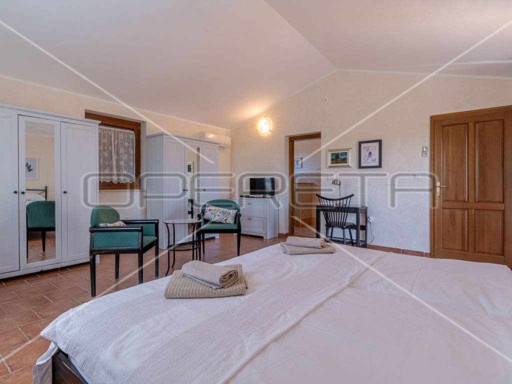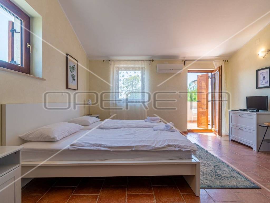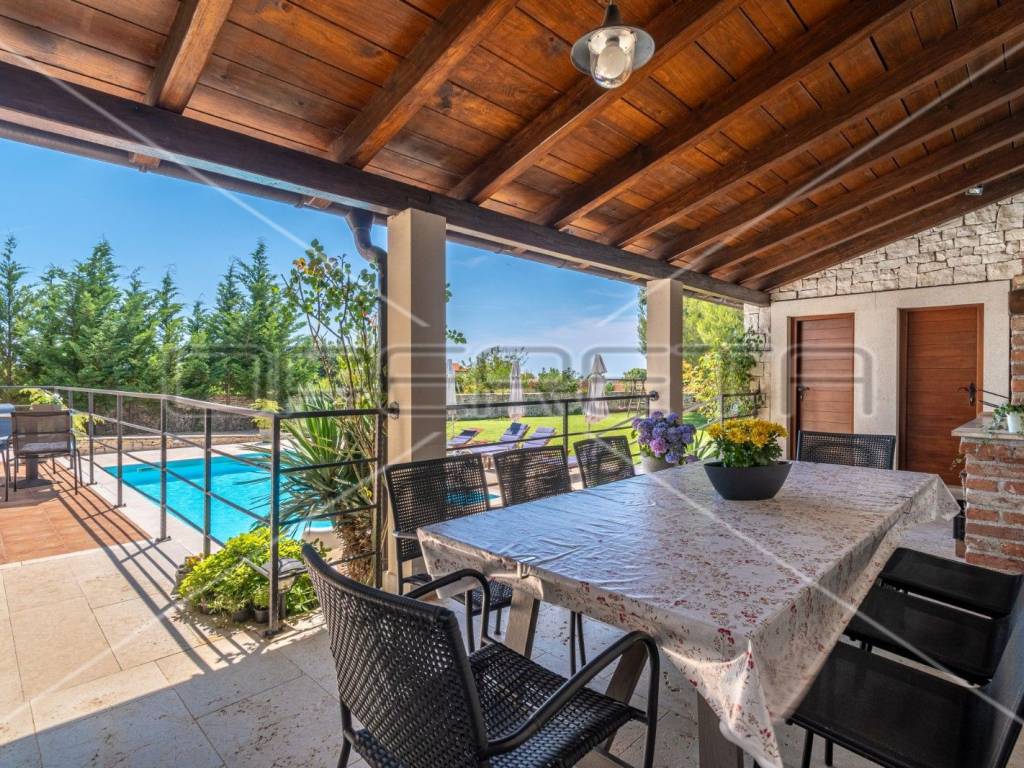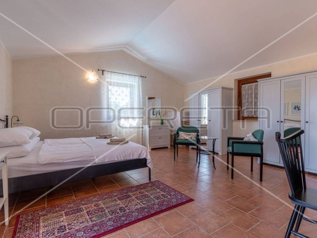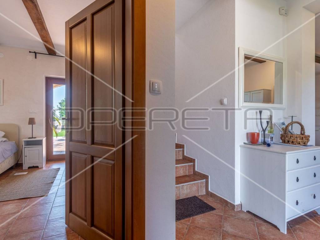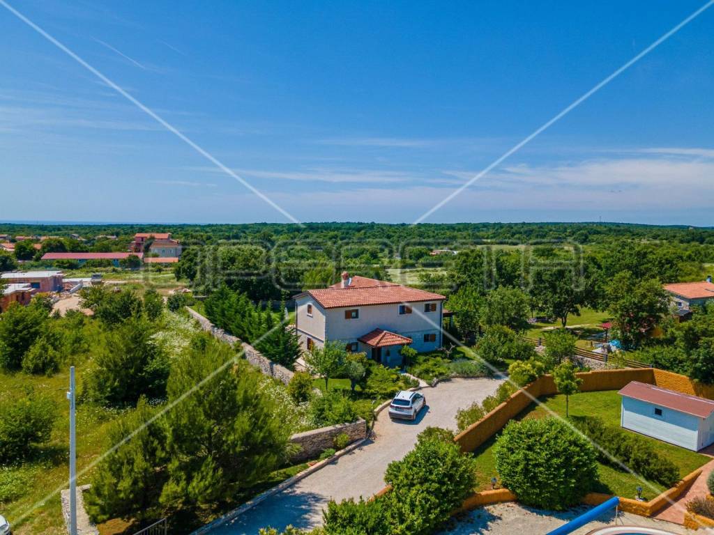 Istria, in one of the settlements of the Municipality of Svetvinčenat, in complete peace, surrounded by nature, this impressive villa built in a rustic style is located.
