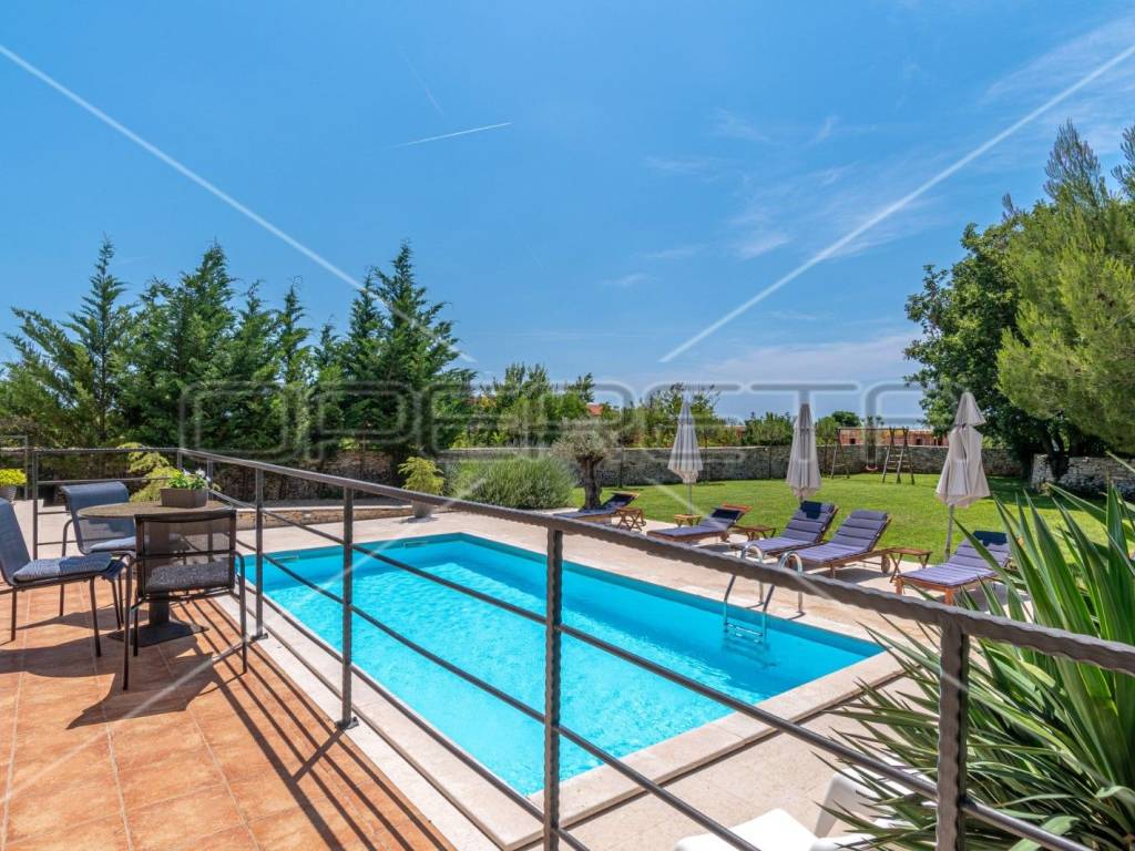 The villa is located on a spacious plot of 1527 m2, surrounded by a stone wall and a fully landscaped garden with Mediterranean plants and olive trees, radiating real charm.