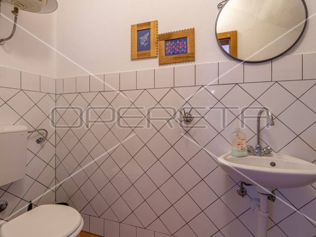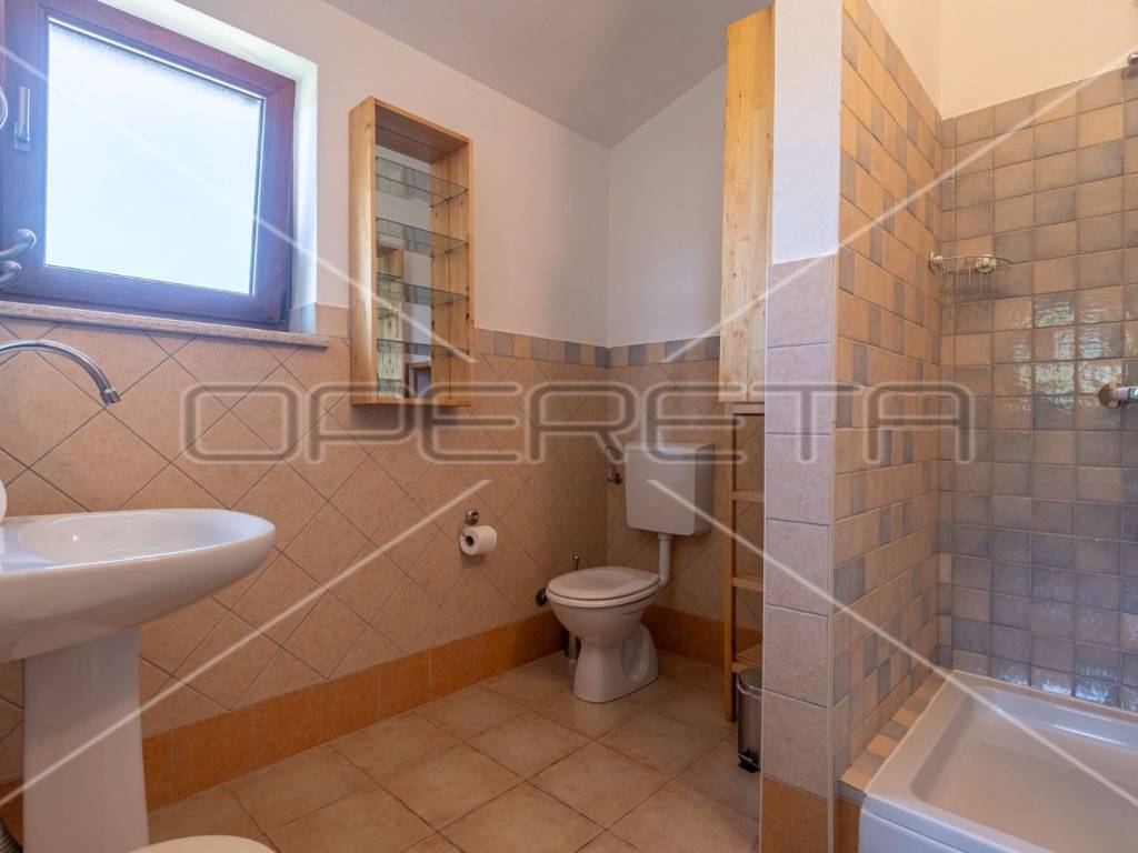 On the ground floor there is an entrance area, a living room with a beautiful authentic fireplace and an exit to the terrace, a kitchen with a dining room, a bedroom with a bathroom and an additional toilet.
