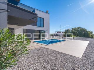 The house is oriented to the south, with a flat roof. The joinery is PVC, with triple glazing and electric windows. All rooms except the bedrooms are tiled, and 4 air conditioners are installed (in each room and the living room). The garden includes a 28 m2 swimming pool (7x4 m), ideal for enjoying warm summer days, a garden and parking spaces.
