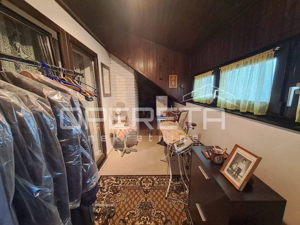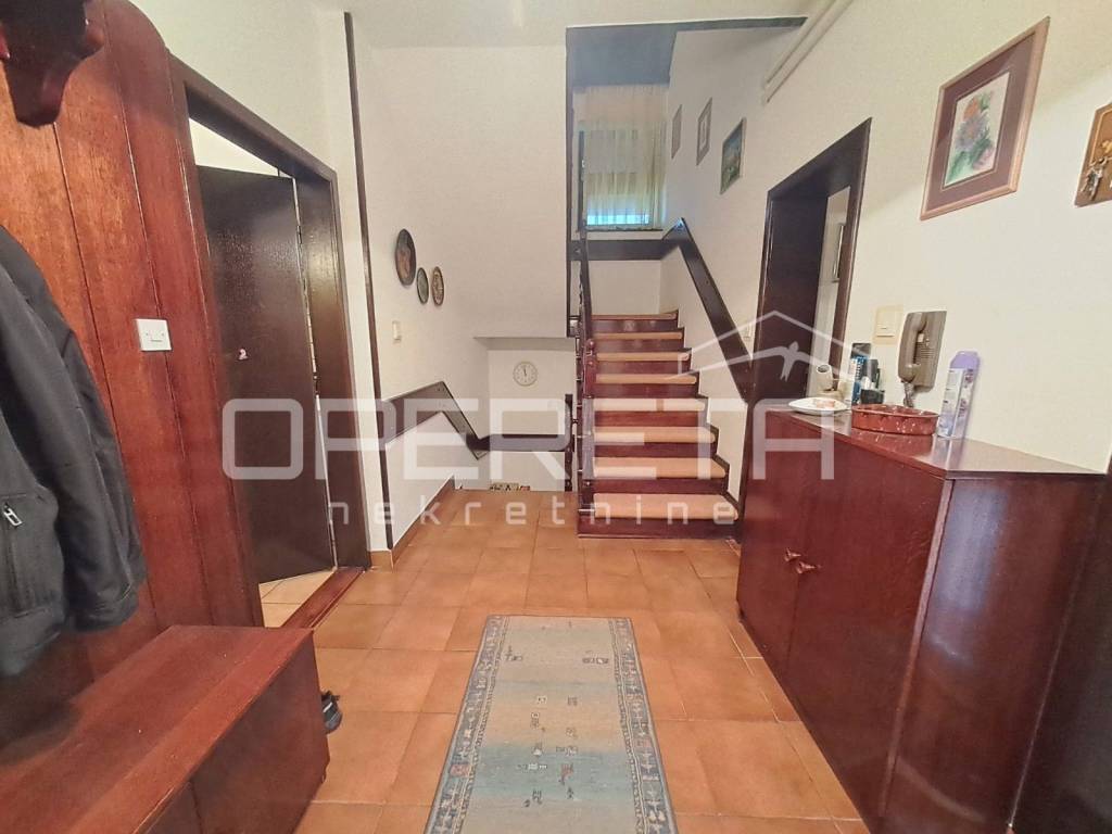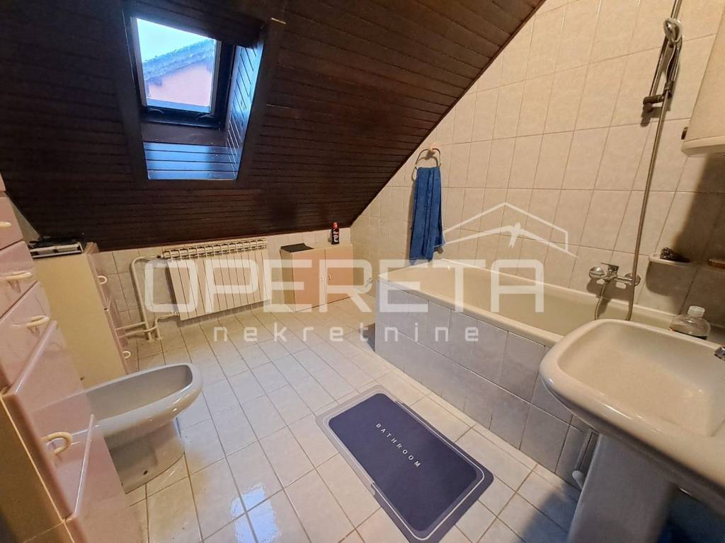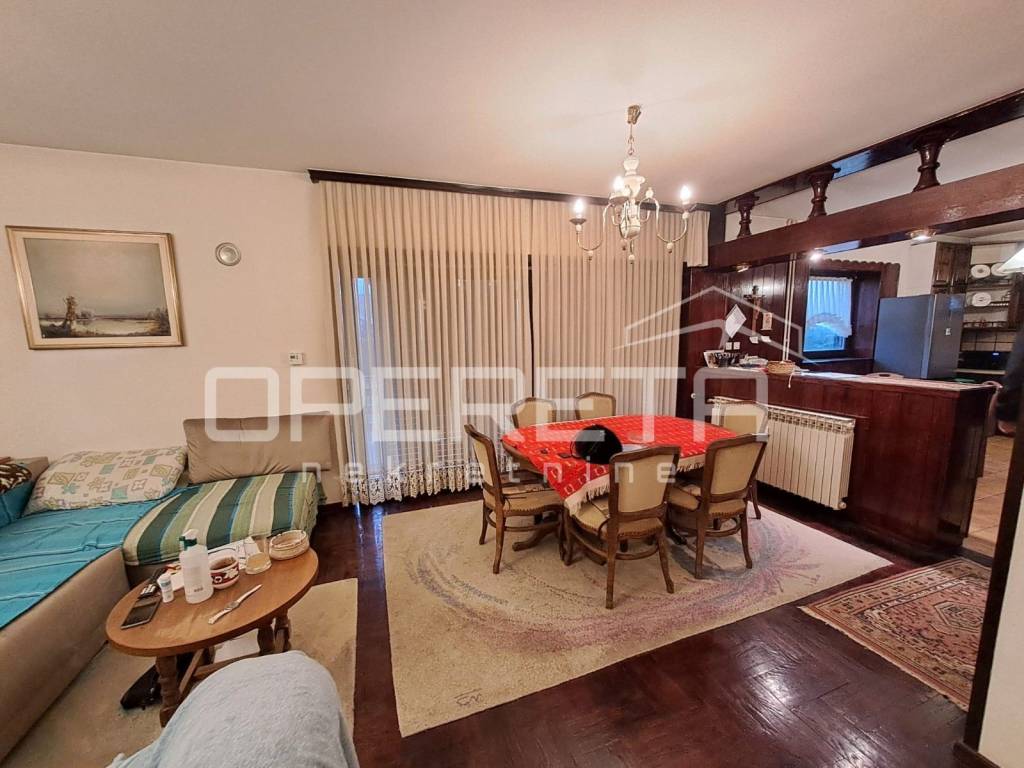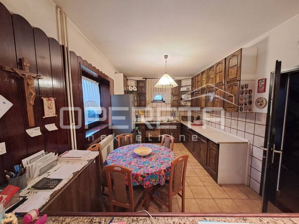 Odlična samostojeća katnica, građena s puno armirano betonskih dijelova preko podruma, ugaonih serklaža do zidova debelih 40 cm. Jako kvalitetna, održavana kuća koja se prostire na 116m2 prizemlja i 103m2 potkrovlja povezanih unutarnjim stepeništem. Ispod kuće je veliki podrum od 65m2 kroz 4 prostorije. Kuća je suha, s provedenom drenažom, topla, s odličnom izolacijom. Iza kuće je dvostruka dupla garaža od 69 m2 za 4 auta ili za radionicu. Prekrasna parcela s vrtom ispred i iza kuće, smještena u mirnoj ulici, a kuća je uvućena od ceste. Sva dokumentacije je uredna i moguće ju je kupiti kreditom. Sva eventualna ulaganja bila bi samo iz kozmetičkih razloga. Prilika!