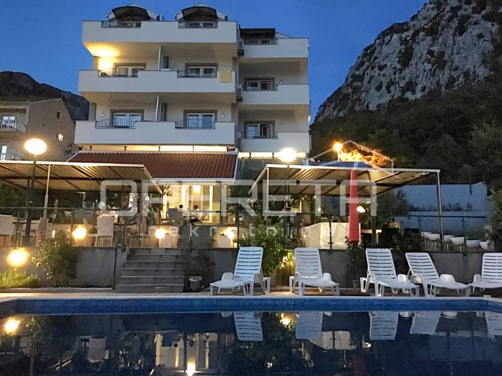 Predstavljamo vam iznimnu investicijsku priliku obiteljski hotel s dugogodišnjim, uhodanim poslovanjem smješten u mirnom priobalnom mjestu na Makarskoj rivijeri, svega nekoliko minuta hoda od predivne šljunčane plaže i svih sadržaja.