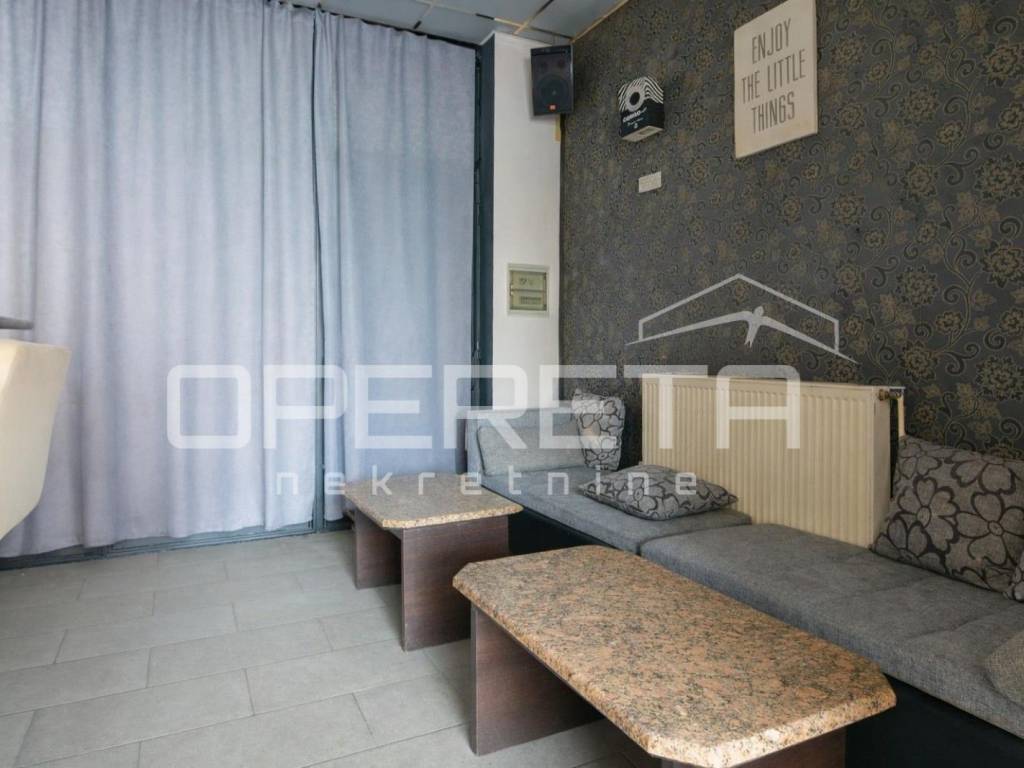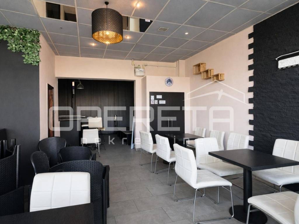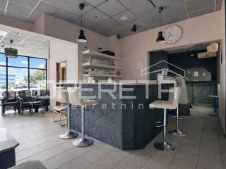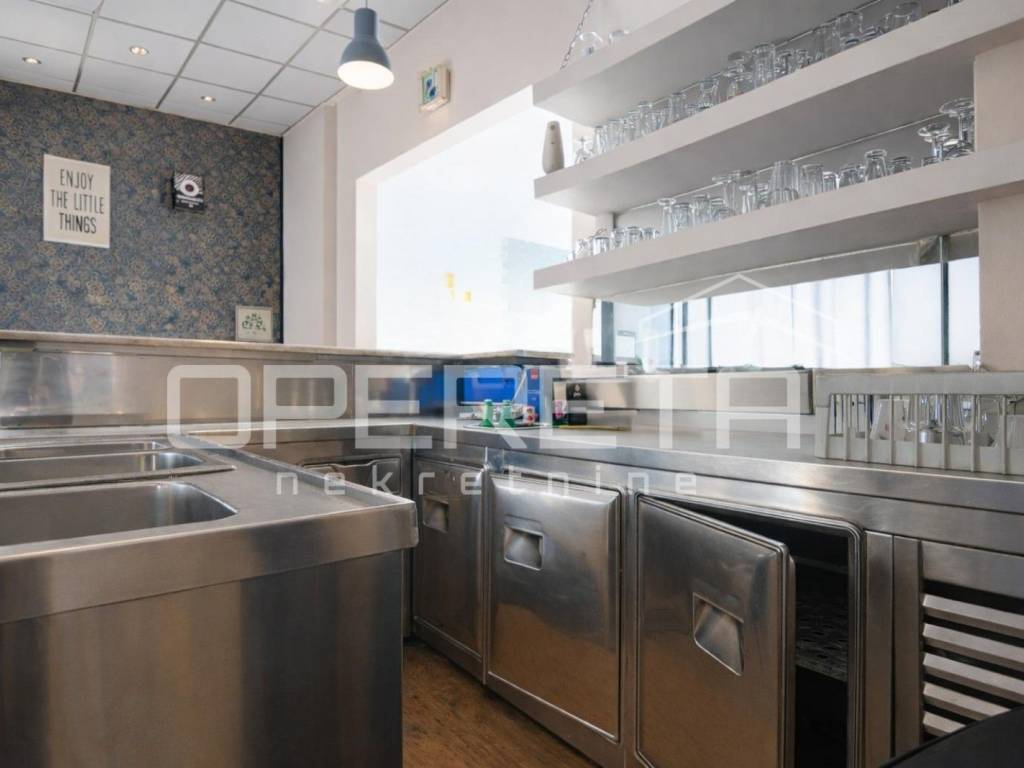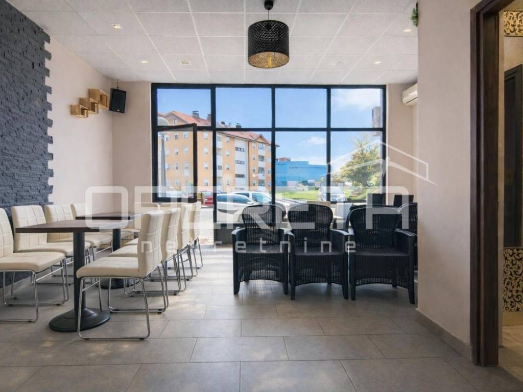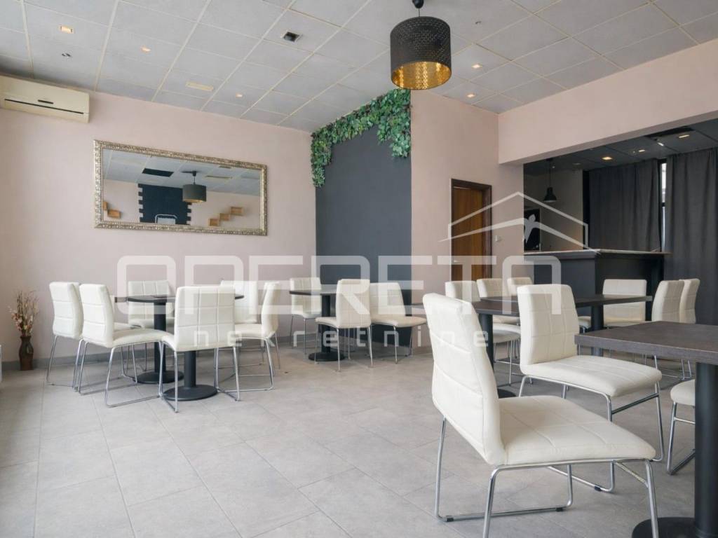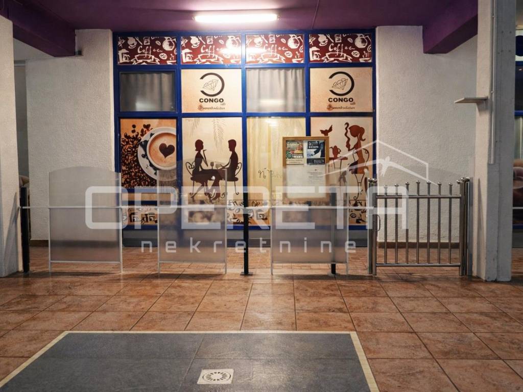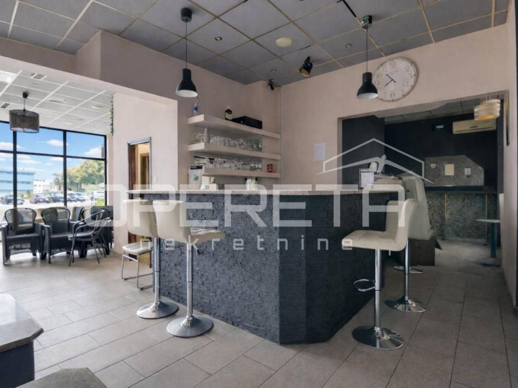 Prostor je prethodno korišten kao kafić, a unutarnji dio obuhvaća oko 70 m, adaptiran posljednji put 2010. godine, te je potpuno spreman za nastavak poslovanja. Opremljen šank omogućava brz početak ugostiteljske djelatnosti, dok prostrani stakleni otvori prema glavnoj ulici pružaju obilje prirodnog svjetla i ističu prostor izvana, čime ga čine savršenim za izlog ili druge poslovne namjene.