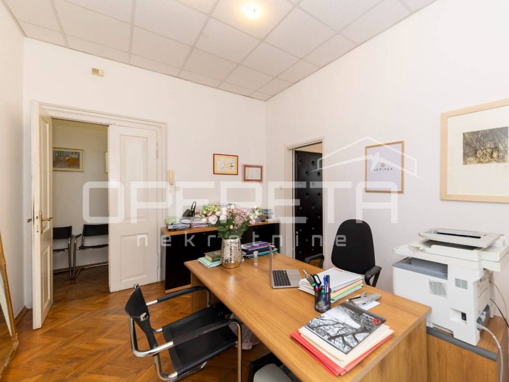 Poslovni prostor sastoji se od dvije sobe, kupaonice s toaletom i vanjskog hodnika u suvlasništvu. Idealan je za različite djelatnosti, poput ureda eminentnog poslovnog subjekta ili odvjetničkog ureda.. Pravna osoba koja je koristila ovaj prostor uvijek je prosperirala.