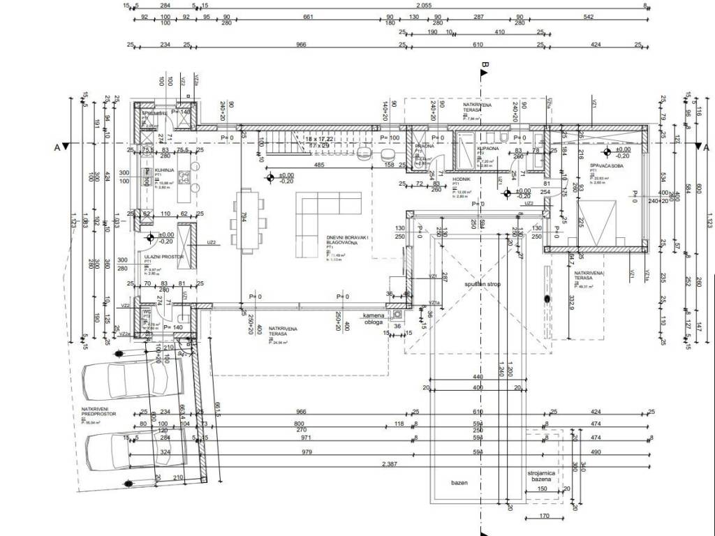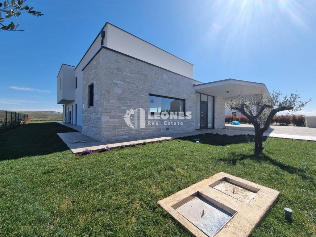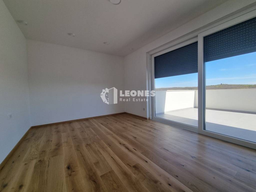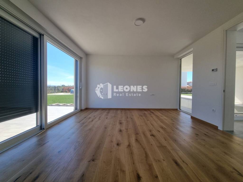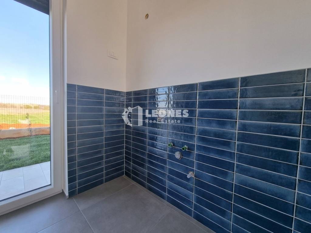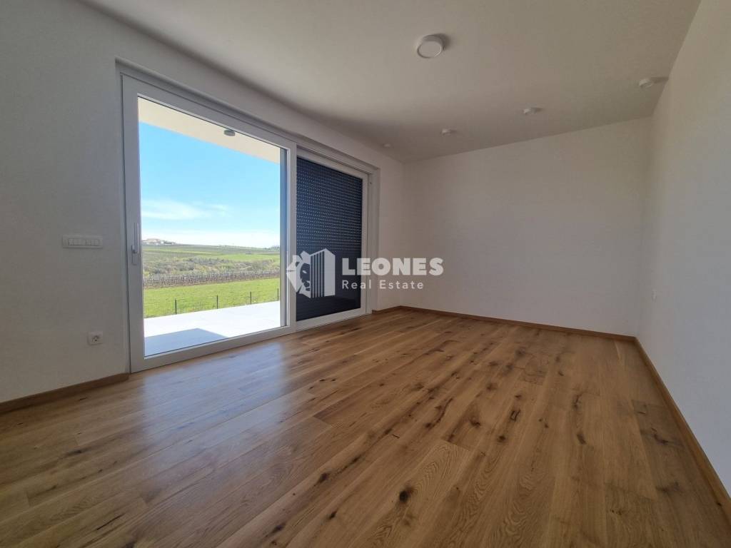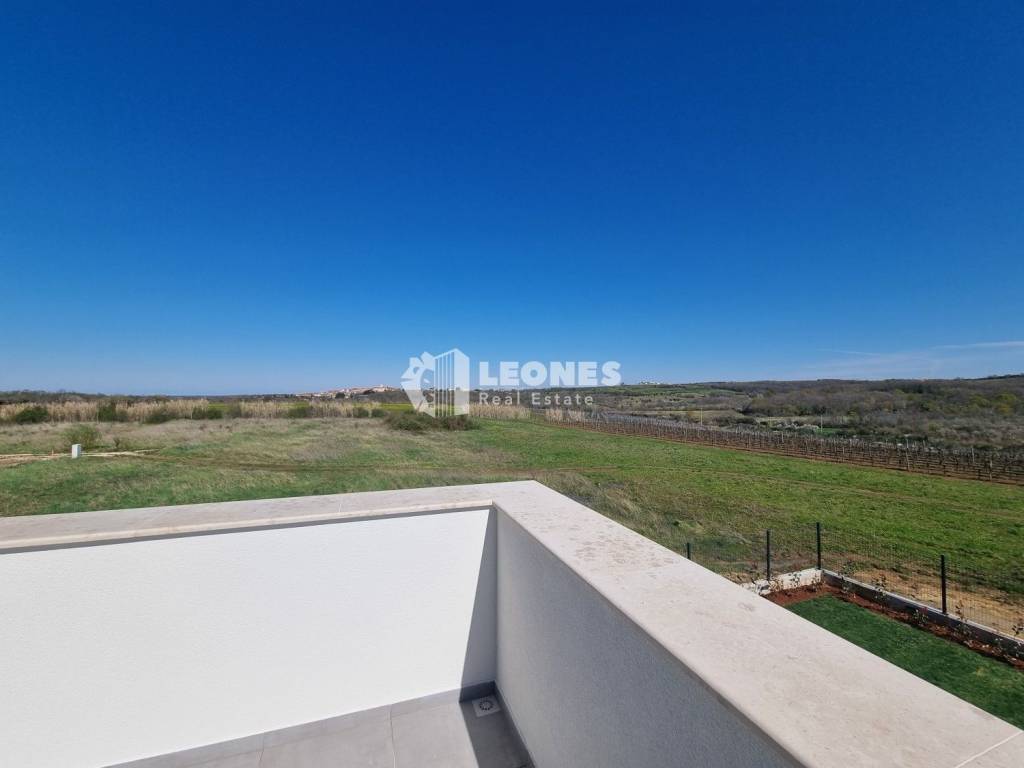 A beautiful modern villa with a heated pool in the vicinity of Brtonigla is for sale. The area of the villa is 220 m2 and it is spread over two floors. On the ground floor there is a large storage room, laundry room, bedroom, bathroom, kitchen with dining room and a large living room. On the first floor there are 2 bedrooms, each with its own bathroom, and 2 terraces with a view of Brtonigla and the greenery. The villa is built with high-quality materials and first-class sanitary ware and ceramics. The land area is 1200 m2 and there is a heated pool of 48 m2. The pool has a counter-current swimming system. Heating is by air conditioning unit and fireplace. The villa is located in a quiet environment and on an elevated microlocation.