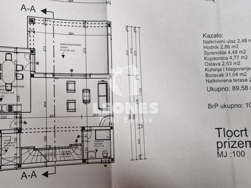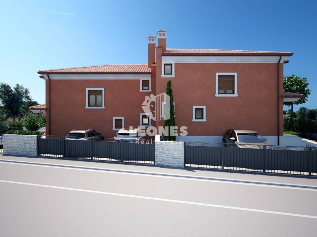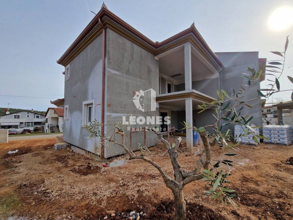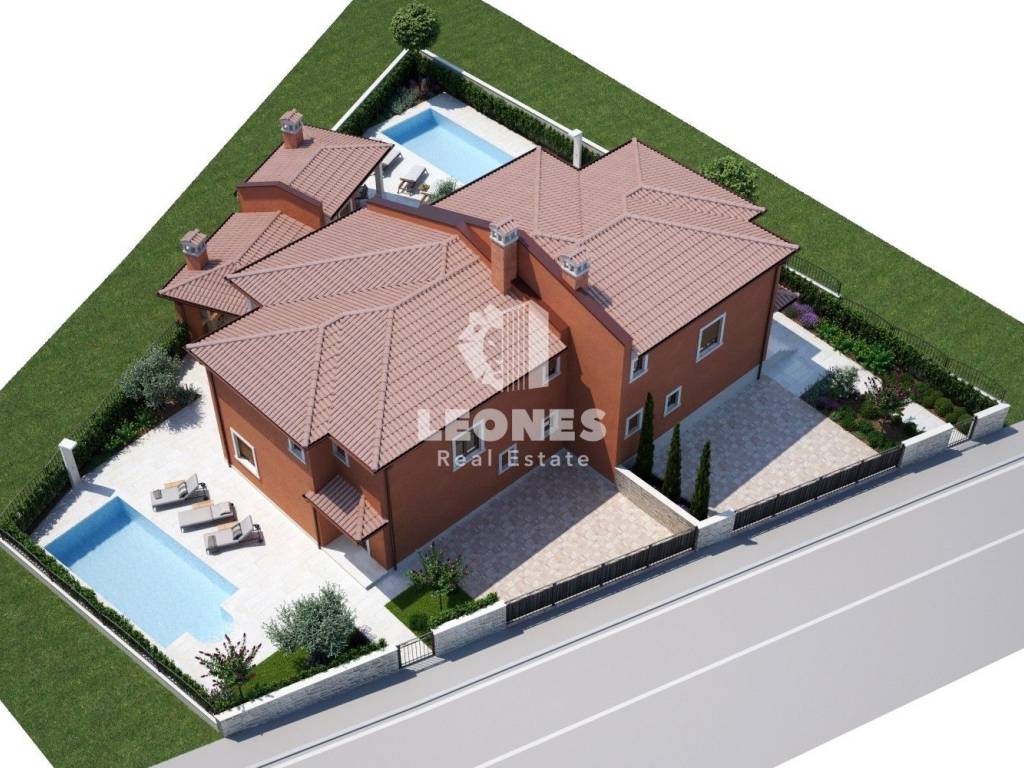 A charming house with a swimming pool in the vicinity of Momjan is for sale. The surface of the house is 173 m2 and extends over two floors. On the ground floor there is a living room, a kitchen and a dining room with access to a covered terrace, a bathroom, a storage room and a pantry. On the first floor there are 3 bedrooms, 2 bathrooms, a technical room and a large covered terrace of 26 m2. A 25 m2 swimming pool with a sun deck, an auxiliary facility of 25 m2 and 2 parking spaces are located on the 340 m2 garden.