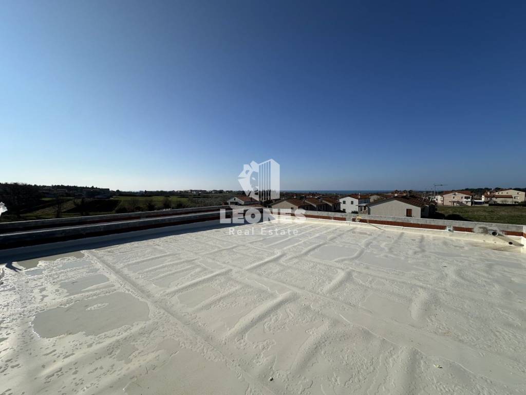Apartment for sale on the first floor with a view of the sea and a roof terrace in Novigrad. This comfortable apartment offers everything you need - two bedrooms, laundry room, bathroom, living room with kitchen and dining room with access to a large covered terrace/balcony and a 69m2 roof terrace with a wonderful view of the sea.