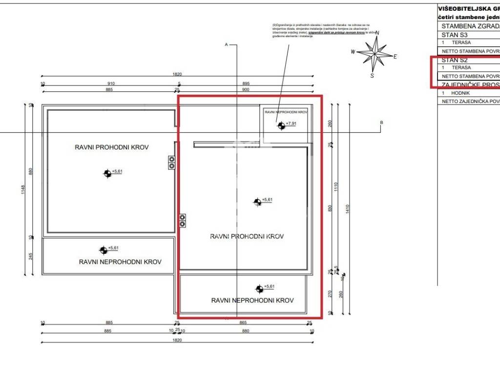 This apartment consists of an entrance hall, laundry room, open space living room with kitchen and dining room and two bedrooms. The living room leads to a large terrace of up to 20 m2. The apartment also has a 70m2 roof terrace with a wonderful view of the sea.