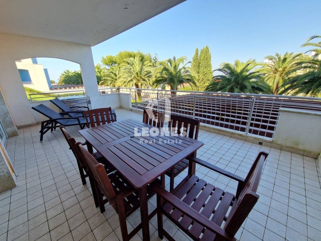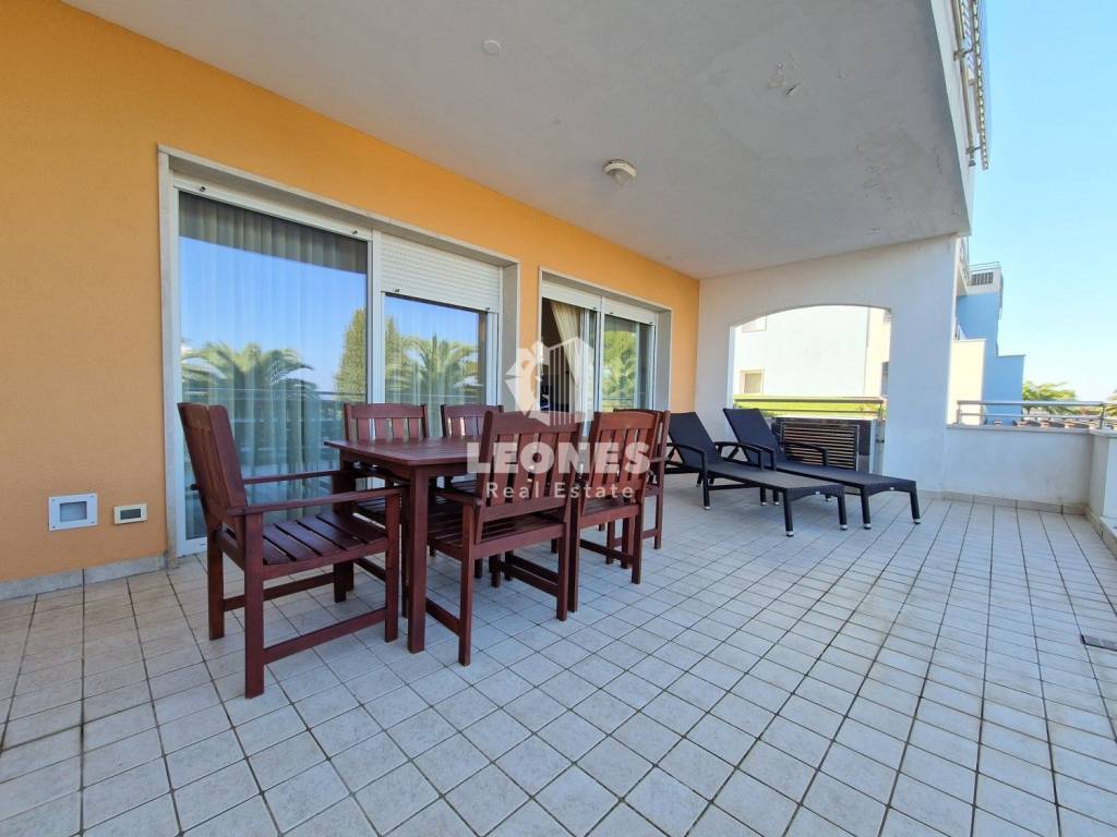An apartment with a sea view is for sale in Savudrija, Crveni vrh. The area of the apartment is 116 m2 and consists of a living room, kitchen, large terrace with a sea view, 2 bedrooms, 2 bathrooms and a storage room in the basement. Heating and cooling is on air conditioners. The apartment is sold fully furnished. The building has an elevator. The parking space is for an extra charge.