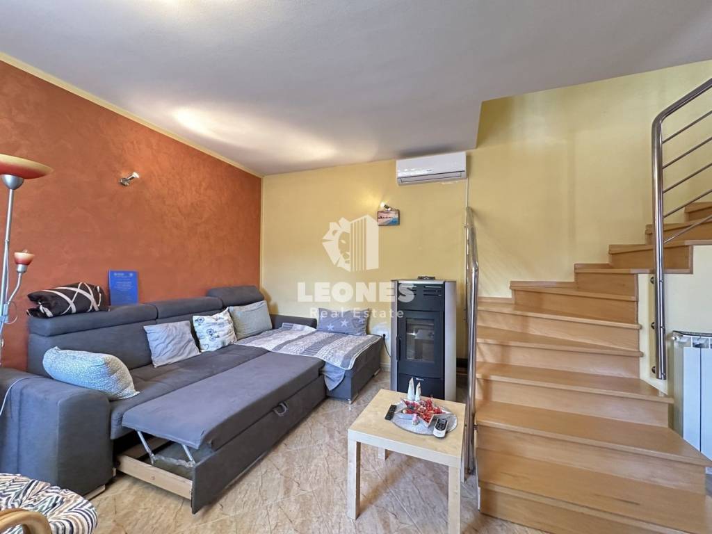 It covers 220m2 and consists of a ground floor area with a separate apartment with a covered entrance, a spacious living room, a bathroom and a bedroom.