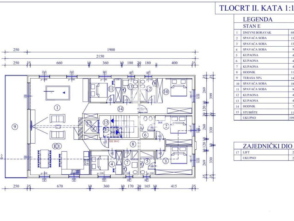 The penthouse consists of a large living room of 68 m2, 5 bedrooms, each bedroom with its own bathroom.