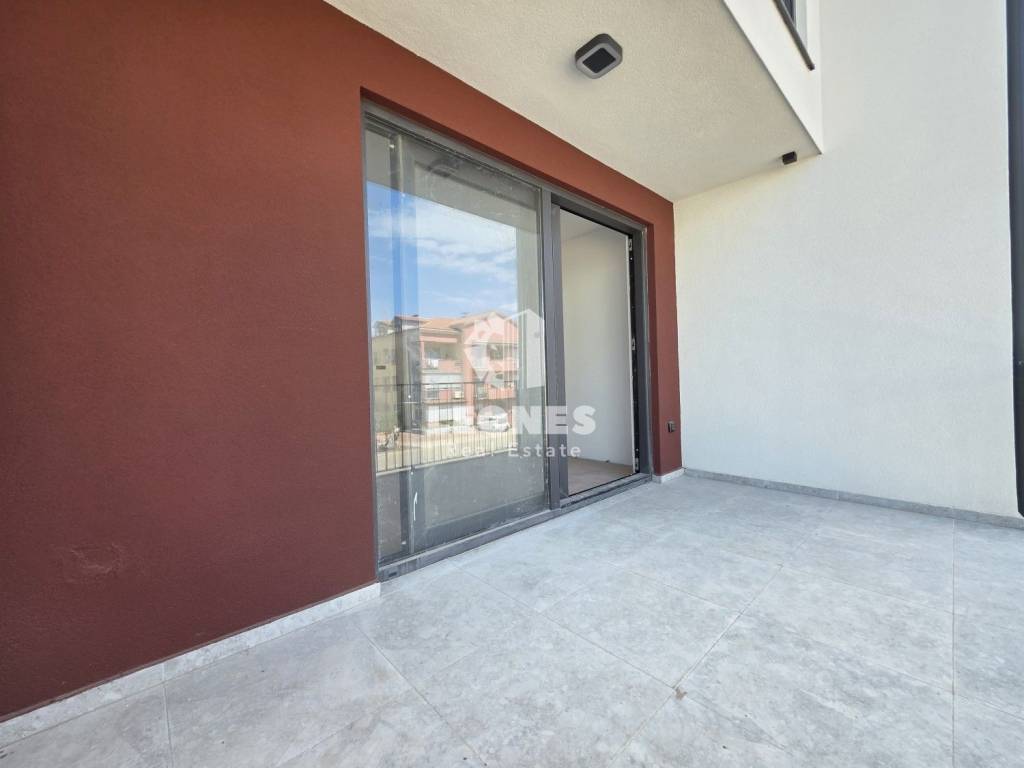 Apartment for sale with covered parking space in a quality new building in Umag. The net usable area of the apartment is 54.66 m2. It consists of a living room and kitchen, bedroom, bathroom and loggia. It has a storage room of 3.08 m2 and a covered parking space