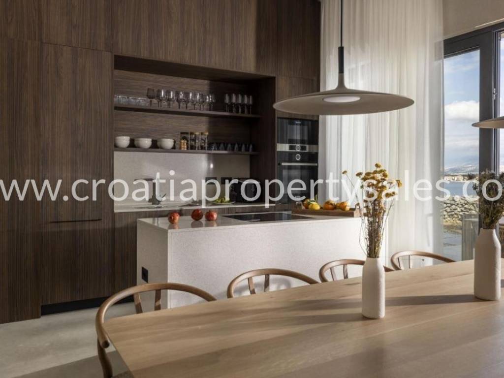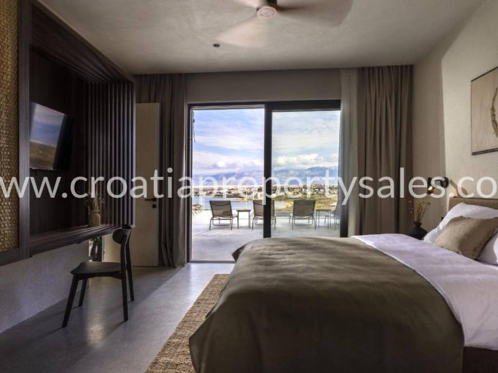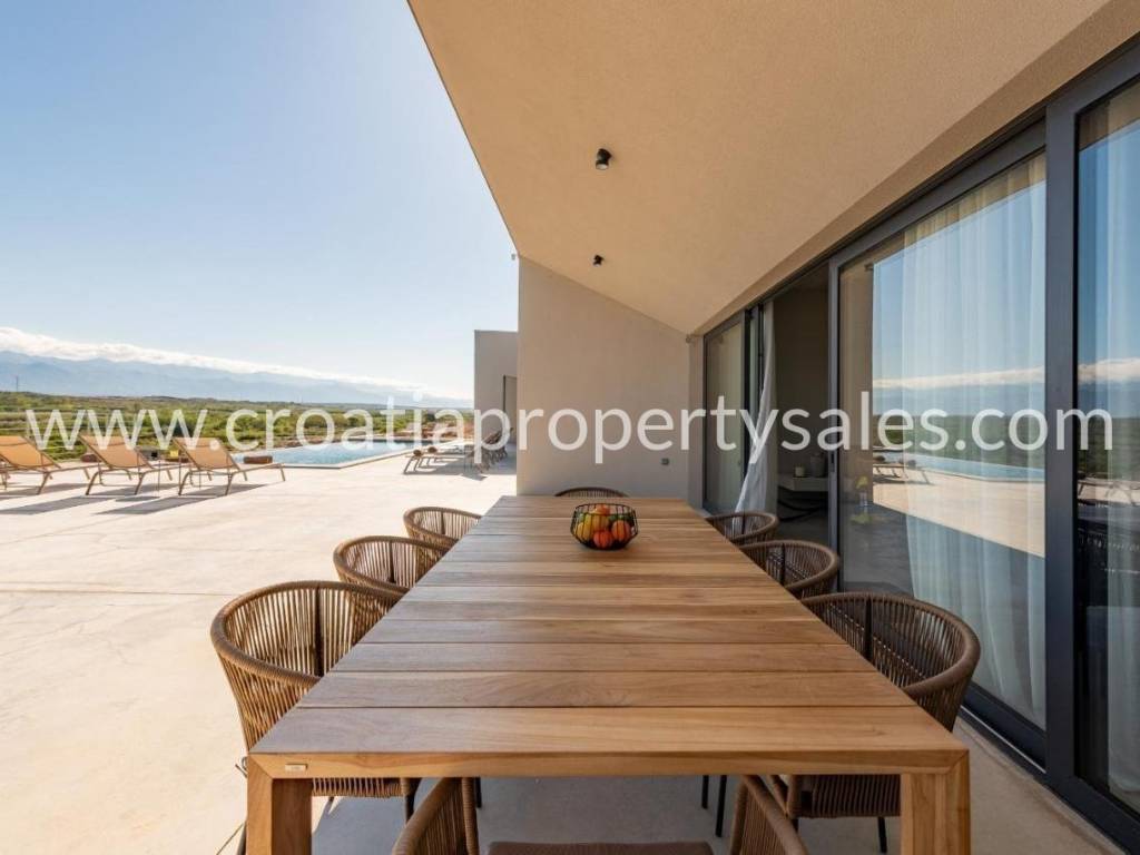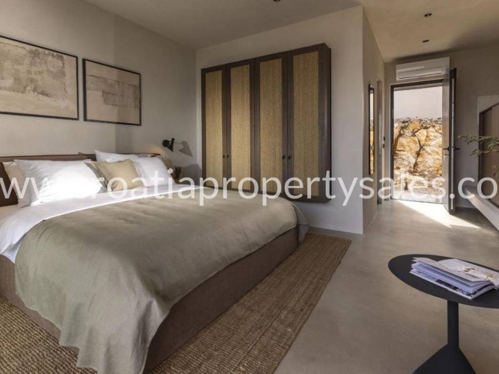 A truly unique property situated in a peaceful location in natural rocky surroundings on the island of Pag 150m from the beach. It comprises five units, two of which are separate and can be used as two studio apartments or two bedrooms. Three units are connected by an attractive glass corridor and consist of an open plan living area with a kitchen, storage room, and three comfortable en-suite bedrooms. All rooms offer access to a spacious terrace with a heated infinity pool (45m2), lounge area and BBQ. A great place to relax in tranquility yet close to the sea and beach. The highest quality materials were used in the construction and furnishing (Bosch appliances in the kitchen, Mitsubishi air conditioners, sanitary equipment Zucchetti and Galassia, Danfos underfloor heating in all rooms, STO facade insulation, ALU K aluminum carpentry). Zadar city centre is 50km away and Zadar airport is 60km away.