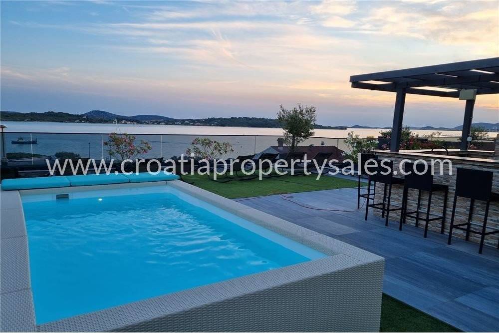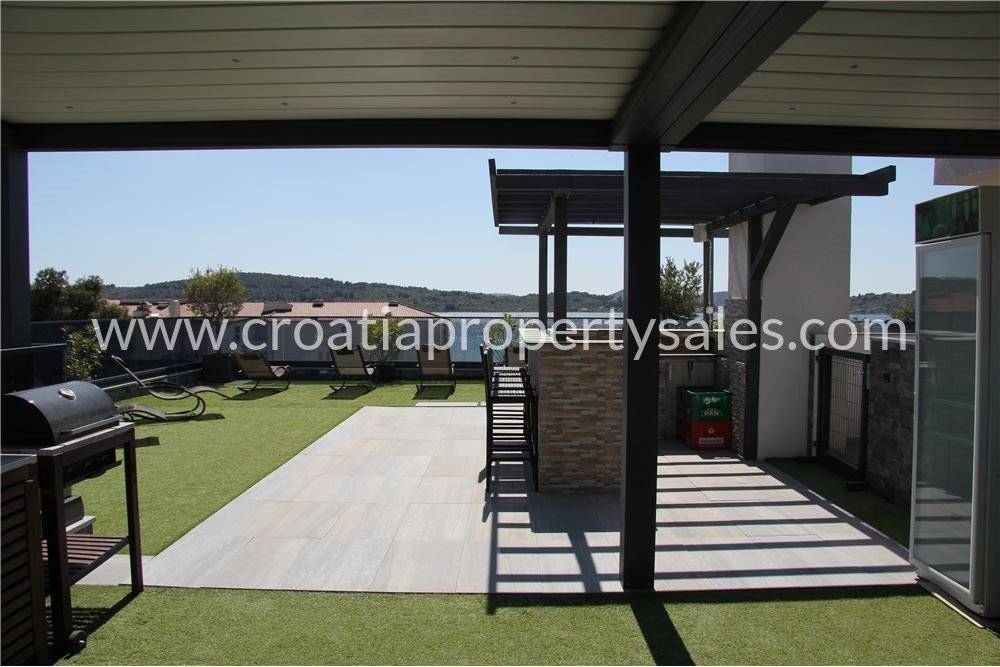 Penthouse apartment on the second floor with large private roof terrace (115m2) with small swimming pool and panoramic views out to the sea.