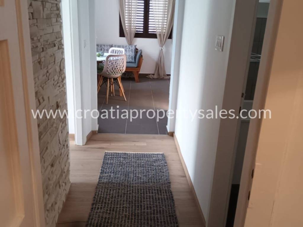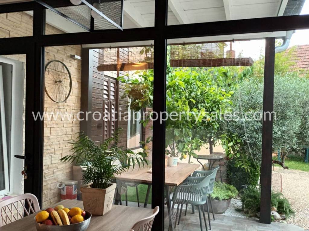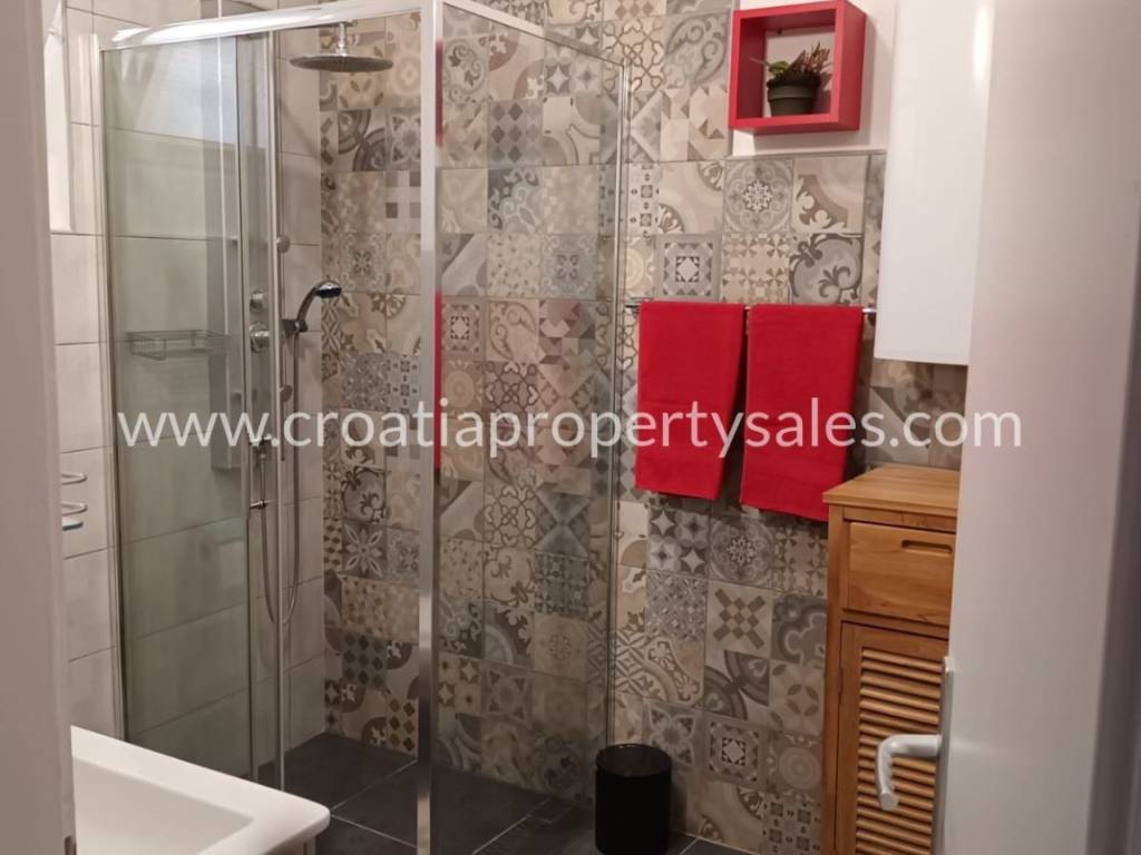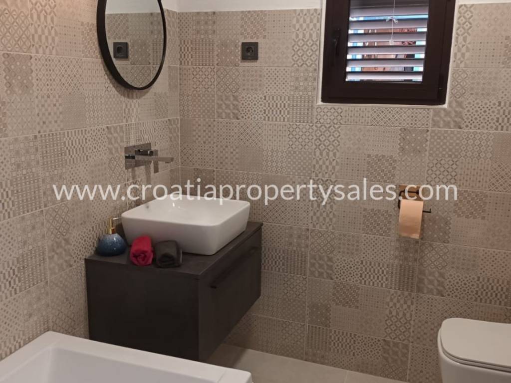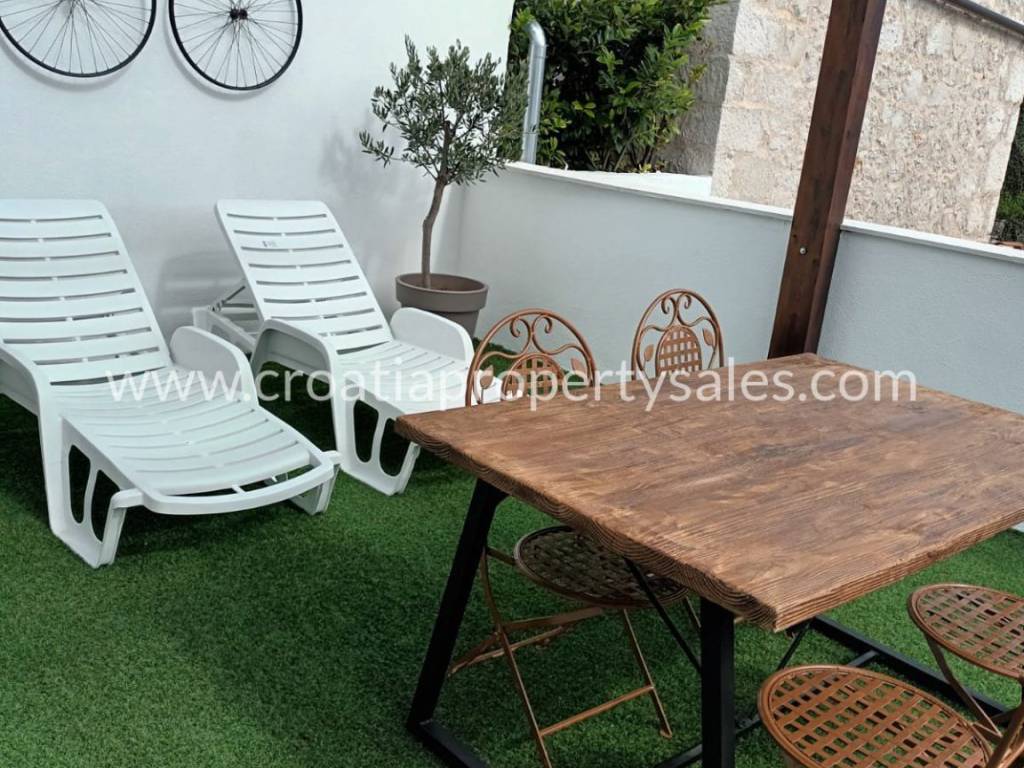 The first floor consists of a spacious apartment with a large terrace, two bedrooms, a modern kitchen, a dining room and a bathroom. This bright and sunny apartment with a separate electricity meter is an ideal opportunity for additional income from tourism.