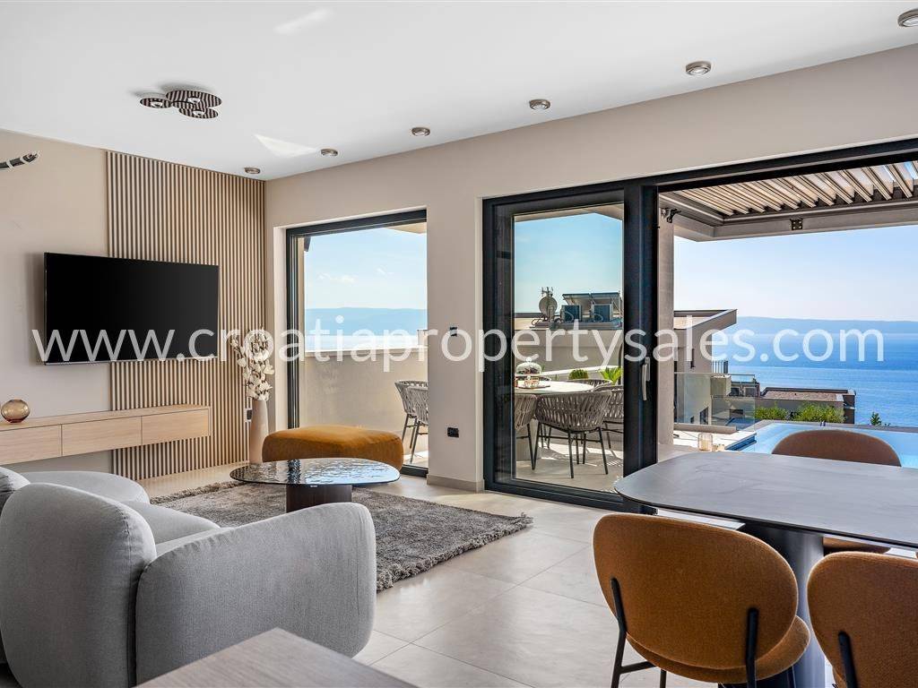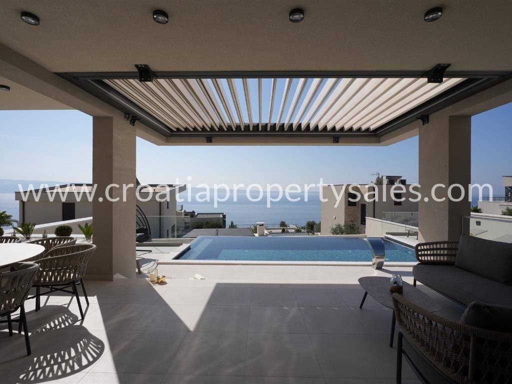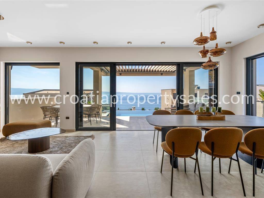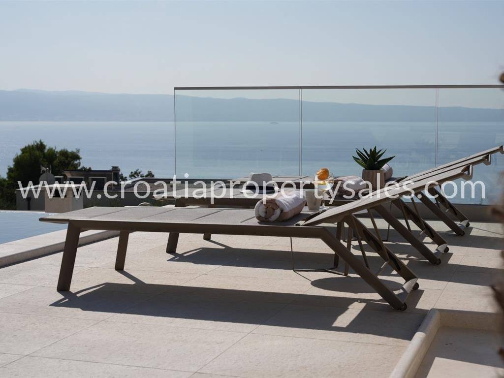 On the ground floor of the villa there is a bedroom with its own bathroom, a guest toilet, a kitchen with a dining room and a living room, from which you can access a beautiful terrace with an overflow pool and a sun deck with a wonderful view of the sea and the islands.