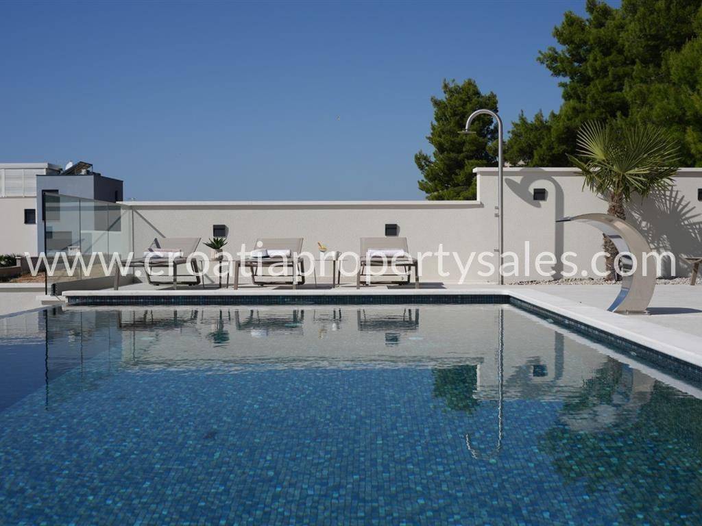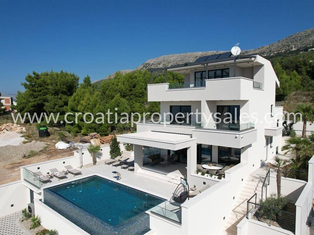 An attractive villa with a modern design built in a complex of villas in a small town not far from Split.