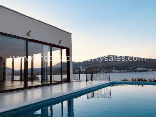 A modern two-story villa with a living area of 315 sqm, consisting of a large living room, fully stocked kitchenette, 4 bedrooms, 6 well equipped bathrooms and a two-car garage. Has 2 spacious outdoor terraces, while the terrace on the upper floor is fitted with an illuminated and heated swimming pool.