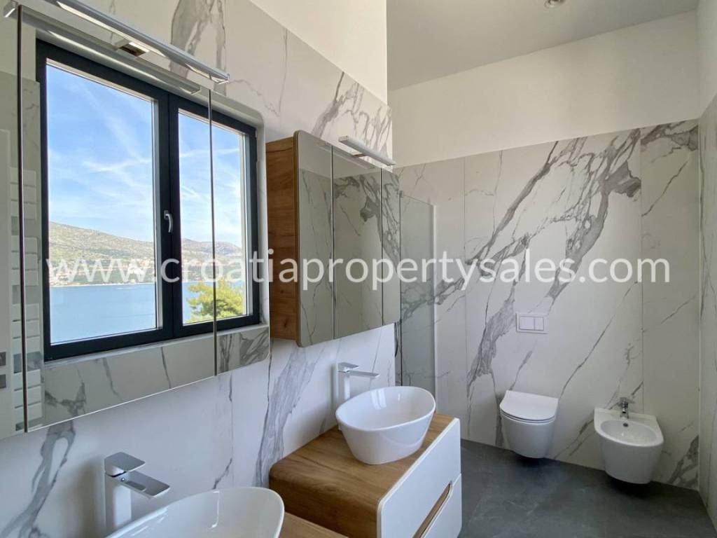 This villa is located in the 4th row from the sea and like all 8 other villas in the area, has unobstructed and lovely sea views. Its living arrangement differs then other villas in the area. For example, the lower floor consists of 3 studio aparment units, equipped with a kitchennete, bedroom and bathroom. Each of the units has direct acess to the sundeck located on the outside, with stairs leading to the upper floor with another sundeck and a swimming pool.