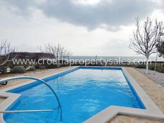 Estate comprises of the main house sized 75 sqm (2 bedrooms, 1 bathroom, open-plan living room with kitchen, dining room and fire place), auxiliary object (gym with toilet, storage and garage), outdoor BBQ, large 12x5 m swimming pool with sundeck and covered parking for 2 cars.