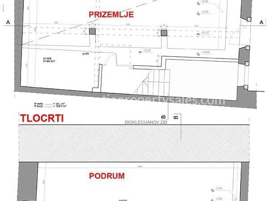 Ukupna površina iznosi 107 m2, a sastoji se od podruma i prizemlja.