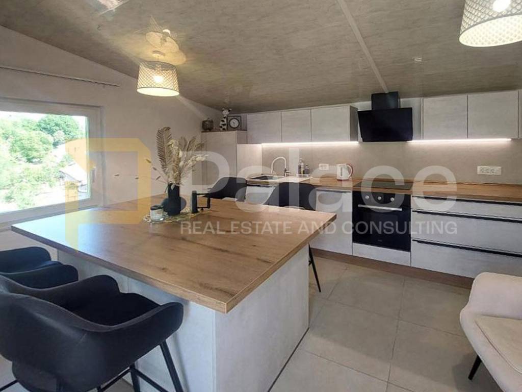 The second mezzanine offers an additional living room and a space with a kitchen, while on the second floor, there is a 55 m apartment with an open concept kitchen, dining room, living room, bedroom, bathroom, and a spacious terrace with a studio apartment. Due to the layout, the mezzanines can be turned into two completely separate apartments, adding value and usage options to the house.