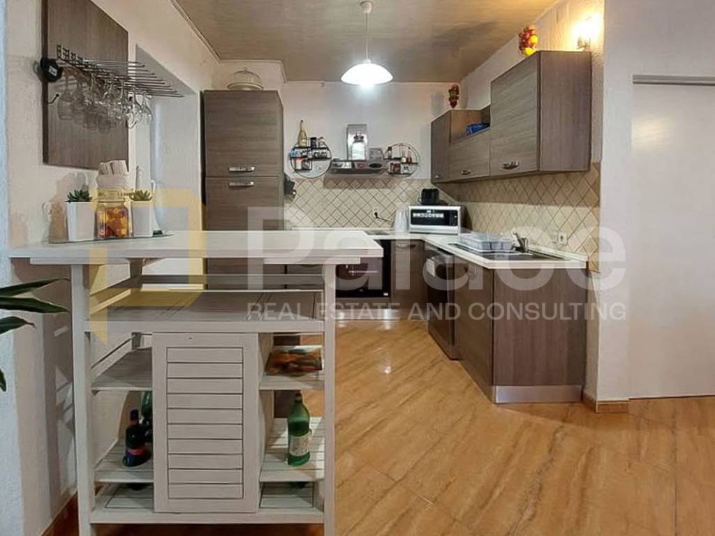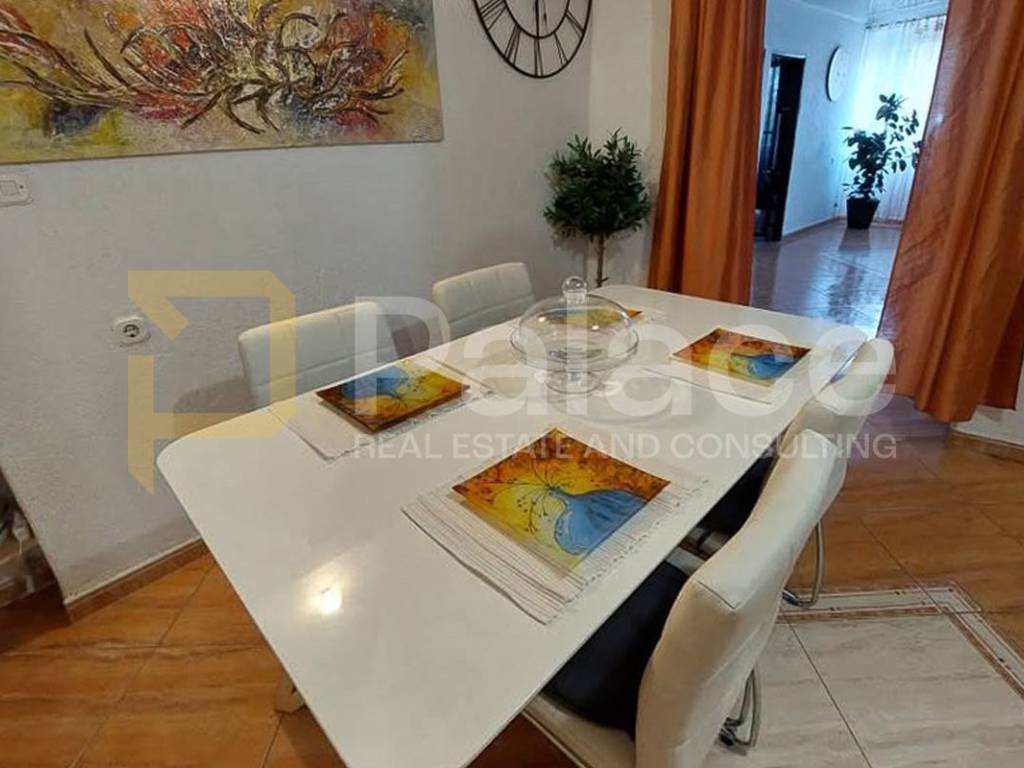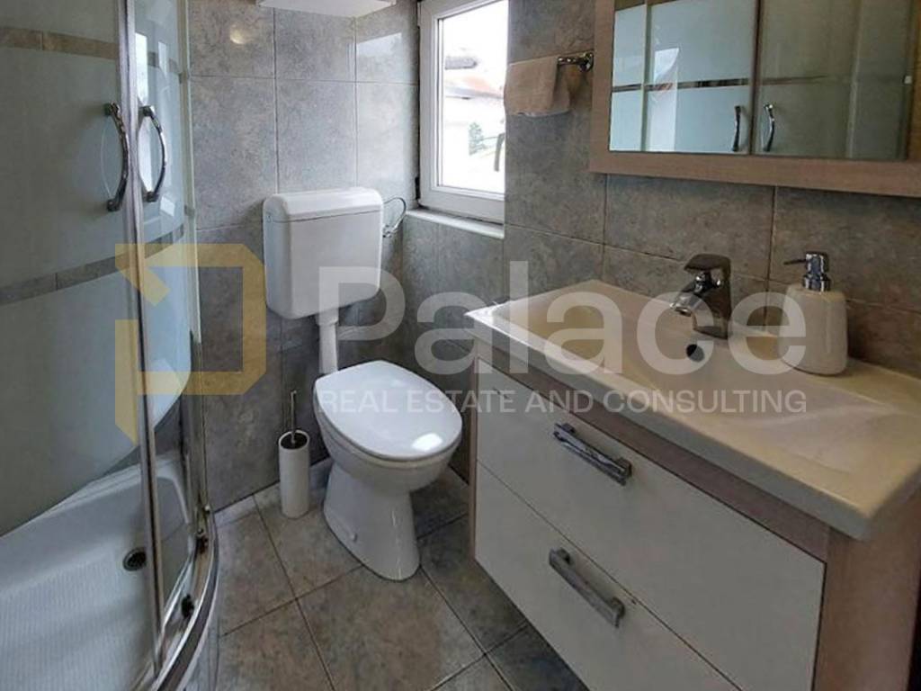The house consists of three apartments, two mezzanines, and commercial space. On the ground floor, there is a 55 m apartment including an open-concept kitchen, dining room, living room, bedroom, and a bathroom. The first mezzanine consists of a room with a sleeping area and a bathroom, while on the first floor, a spacious 80 m apartment occupies the house with a kitchen, dining room, living room, two bedrooms, and a bathroom.