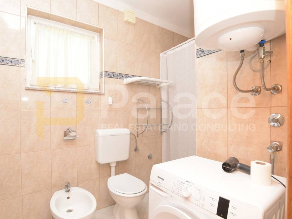 The apartment is fully furnished, and most of the furniture will remain in the apartment. It also includes a parking space in front of the building, as well as a large storage room located in front of the entrance door. The building has two more floors and faces southwest. It is suitable for living and for use in tourism.