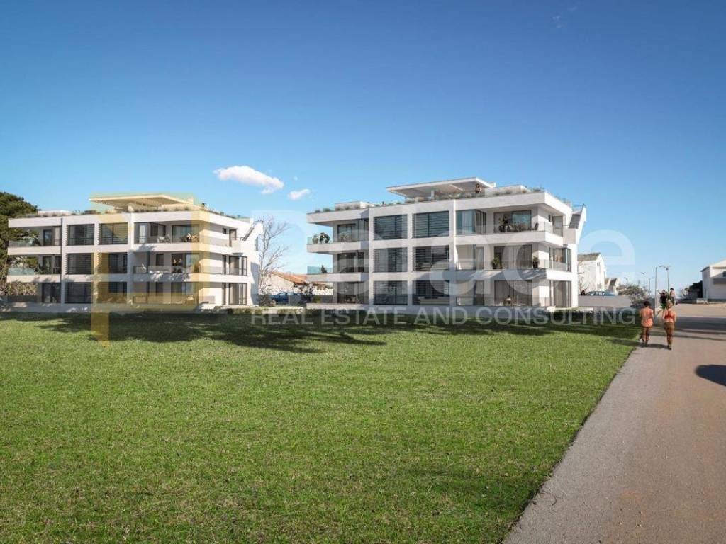 An ideal apartment marked as S1 on the ground floor of a residential building equipped with an elevator and a total of eight residential units is for sale. The apartment covers an area of 77.76m2 and is located just 700m from the sea. The property consists of a hallway, two bedrooms, a bathroom, a separate toilet, and an open-concept living room with a kitchen and dining area. The living room opens onto a spacious balcony and terrace.