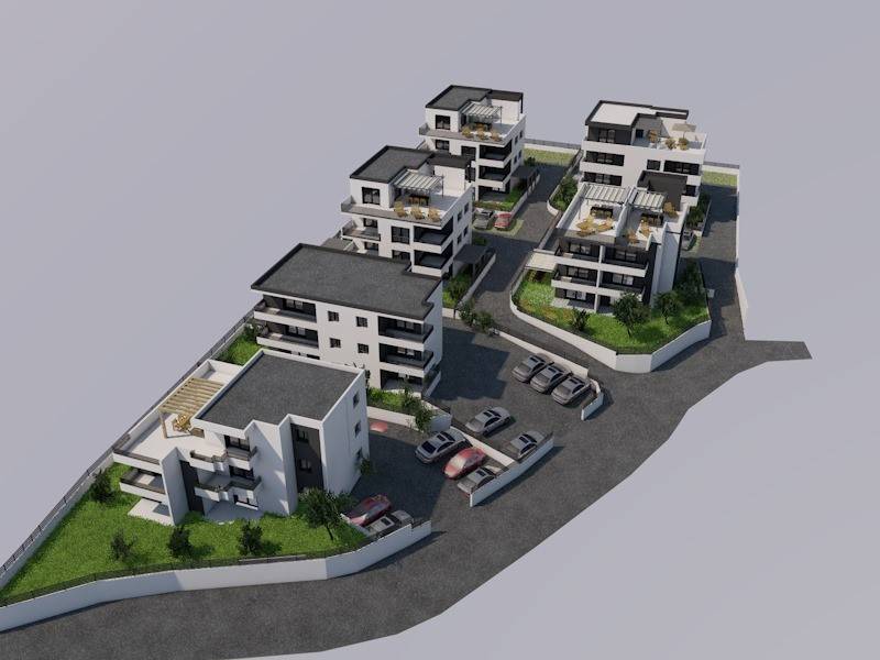 These 6 modernly designed buildings, which are being built in an attractive location, at a distance of 900 m from the sea and the center of Trogir, represent an excellent combination of the beauty of modern construction, practicality and an oasis of peace for everyday life and vacation.