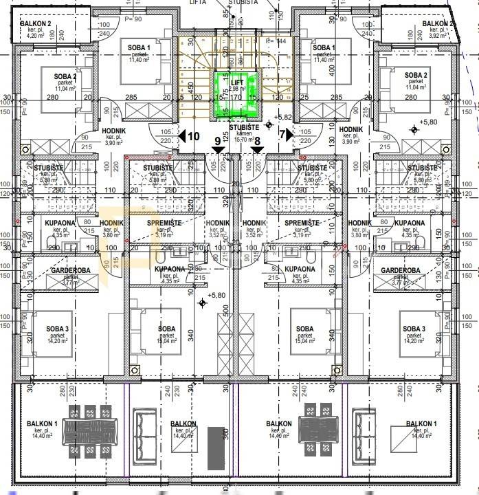 In the beautiful Povljana on the island of Pag, a two-story apartment S9 with a surface area of 85.84 m is for sale. It is located 200 m from the beach on the second floor. The first floor consists of a hallway, a bedroom with a bathroom, a storage room, and a balcony with an area of 14.40 m. On the second floor, there is a kitchen, living room, dining room, and a terrace with an area of 14.40 m. The apartment also comes with an outdoor parking space, while a garage space can be purchased additionally.