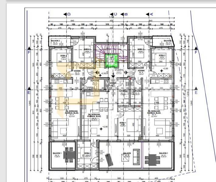In the beautiful Povljana on the island of Pag, an apartment S6 with a size of 80.21 m is for sale. It is located 200 m from the beach on the first floor and consists of a hallway, bathroom, kitchen, living room with dining area, two bedrooms, and two balconies. Both bedrooms have access to a balcony of 4 m, while the living room has access to a balcony of 12 m. It also includes a storage room in the basement of approximately 5.70m. The apartment comes with an outdoor parking space, and a garage space can be purchased additionally.