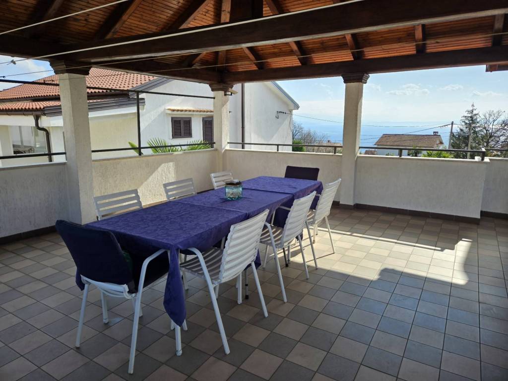 In the basement of the house, there is a space of 52m2 consisting of one common area and a bathroom. On the ground floor (201m2), there are two large rooms, a toilet, a big kitchen, a pantry, and a beautiful terrace overlooking the entire Kvarner bay. On the first floor (111m2), there is a hallway, a large bathroom, a smaller kitchen, a living room with a balcony, two larger bedrooms with balconies, and one smaller room. On the same floor, there is also a space for socializing with access to a covered terrace. Behind the house, there is a garden with currently planted vegetation, but there is also the possibility of building a small pool within it.