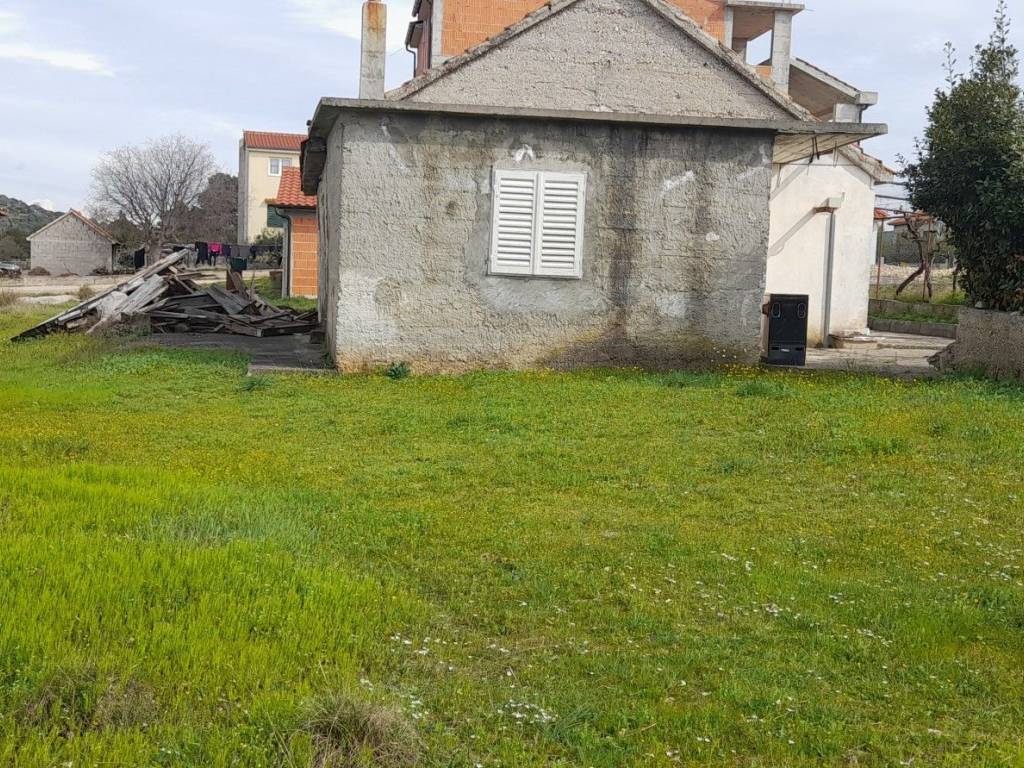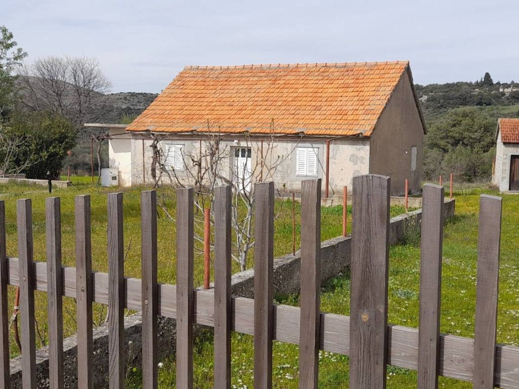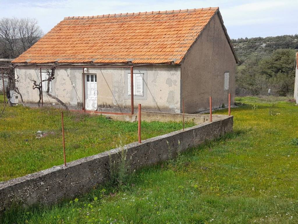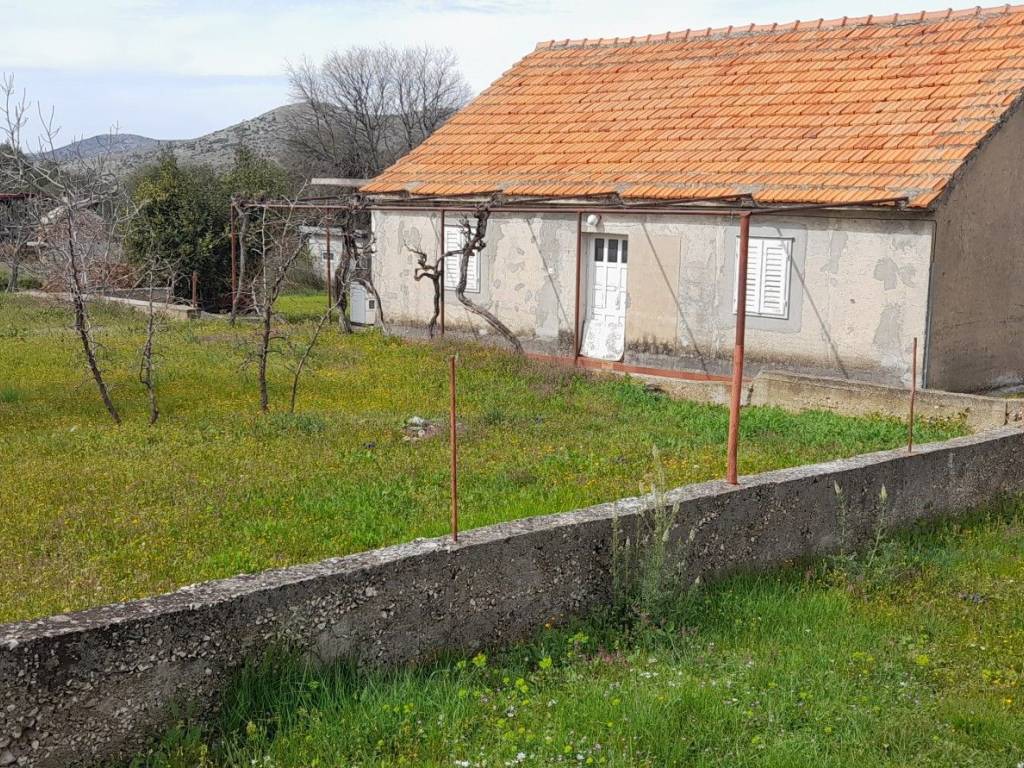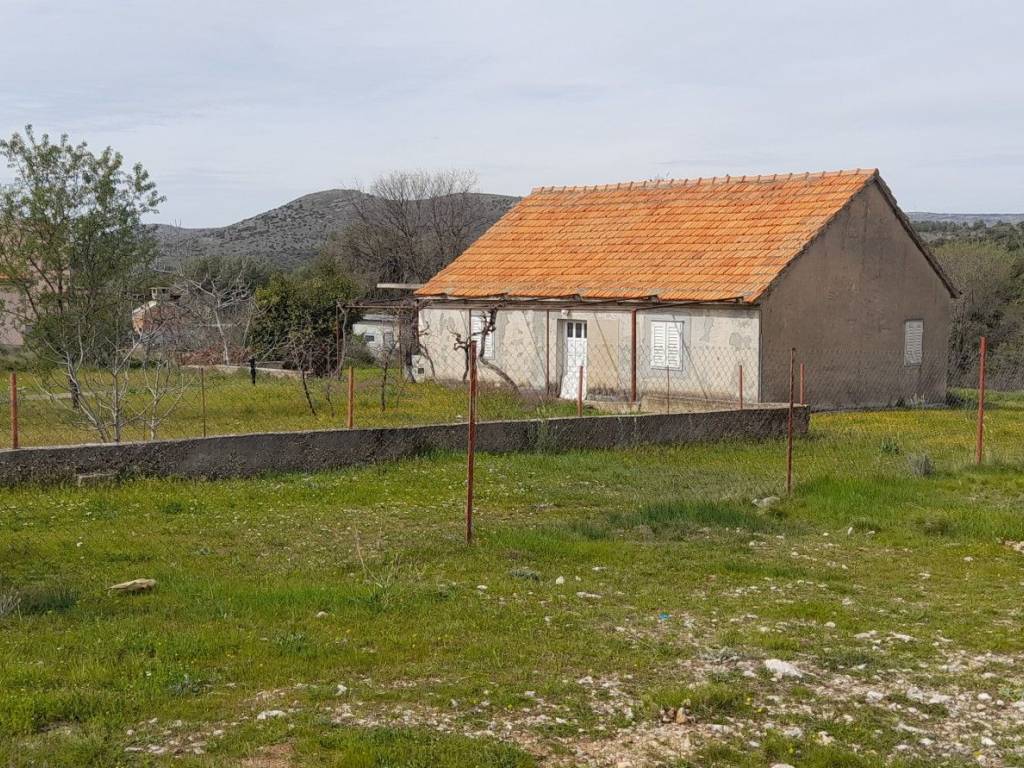 A ground floor house in Vrpolje with a size of 100 m2 is for sale, along with two auxiliary buildings of 40 m2 and 11 m2, with a valid occupancy permit and connections to the electricity and water supply network.