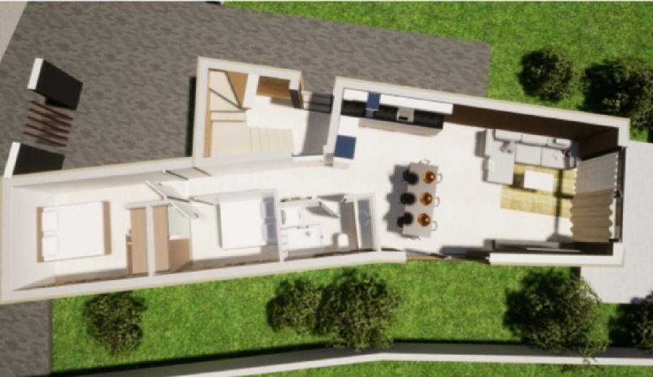 The planned completion of the works is 2023. Quality materials, fully equipped bathrooms, high-quality carpentry will be used in the construction. An ideal location for vacation, close to the center of Žaborić and the beach, only 50 m away from it.