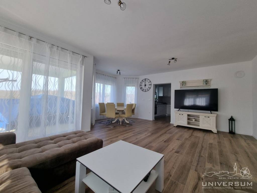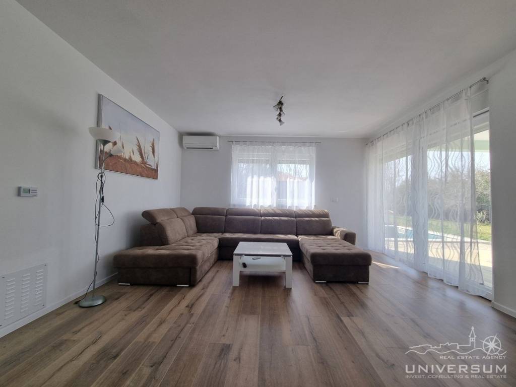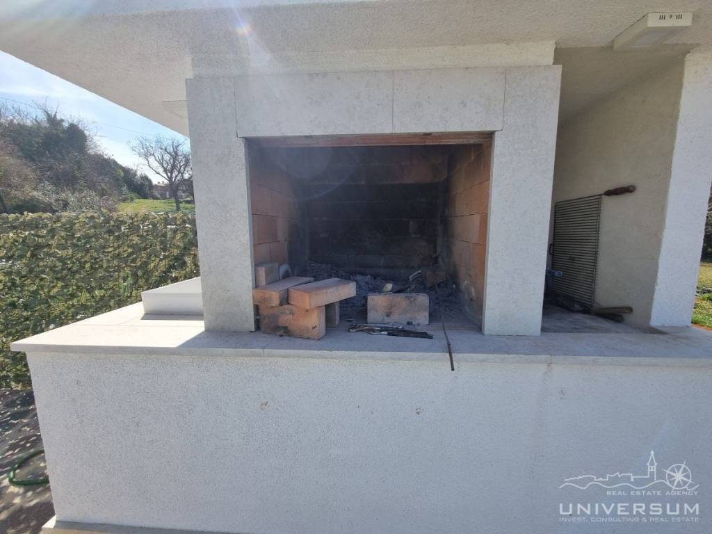 House for sale in a quiet environment near Brtonigla. The surface of the house is 160 m2, while the surface of the land is 965 m2. The house consists of an entrance hall, living room with exit to the terrace, kitchen with pantry, 3 bedrooms and 2 bathrooms.