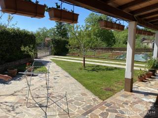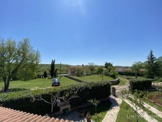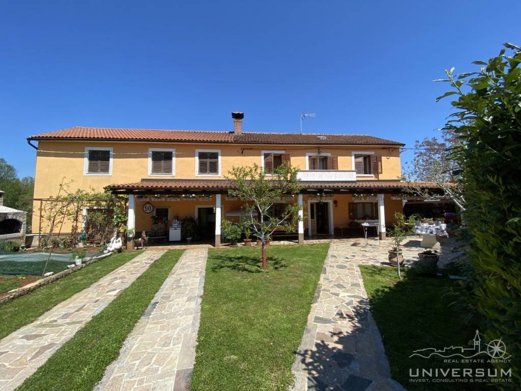 A house of 270m2 is for sale near Grožnjan and Buje in a beautiful and quiet location. The renovated house extends through the ground floor and first floor. The ground floor consists of a living room, dining room and kitchen, bathroom and a large space for socializing with a fireplace. On the first floor there are three bedrooms, a bathroom, one large unfurnished room and a large terrace. It is possible to build a swimming pool in the beautiful and well-kept yard of 300m2. Behind the house there is a large state-owned agricultural plot of 2093m2. The owner has the right to use the plot and there is a possibility of its purchase. Due to its quiet location, the property is suitable for living as well as for tourist purposes.