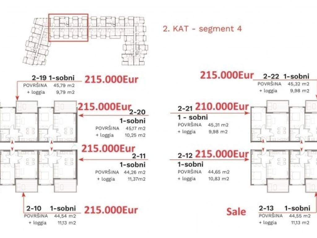 Below you can view pictures of the building along with floor plans that highlight the respective prices of individual apartments.