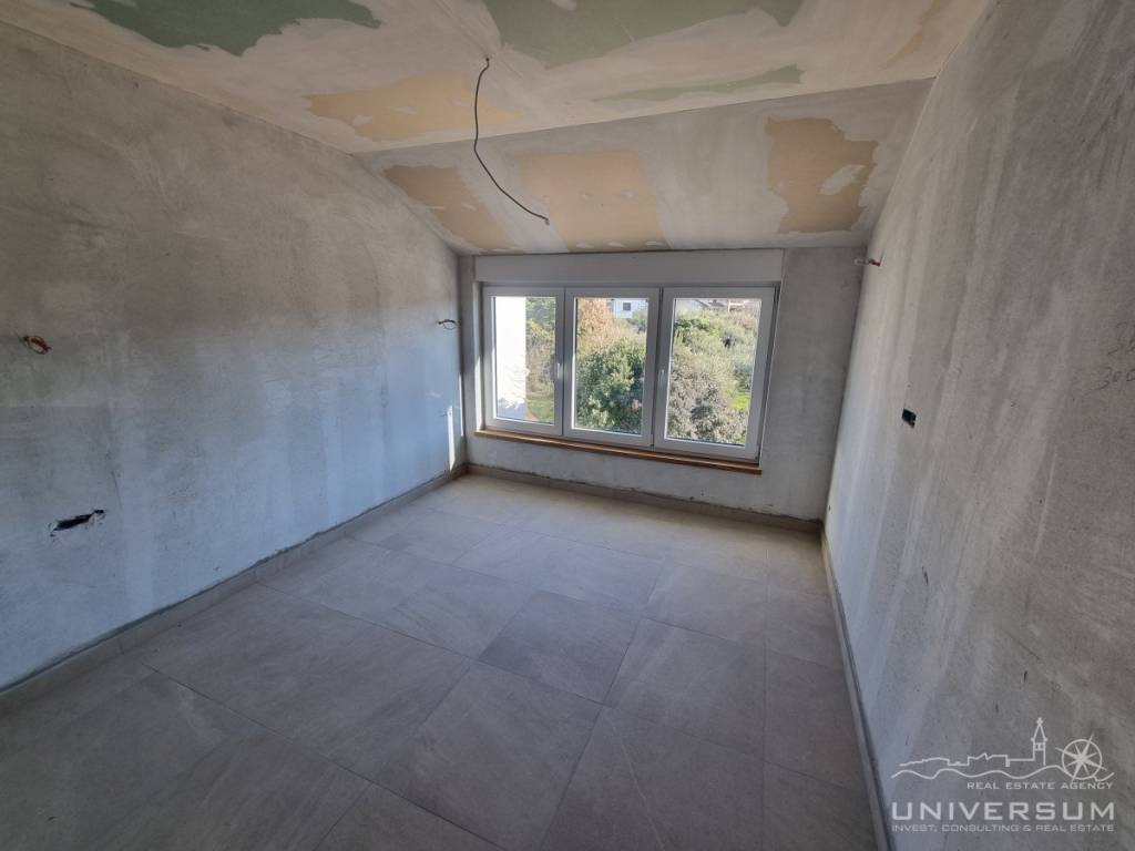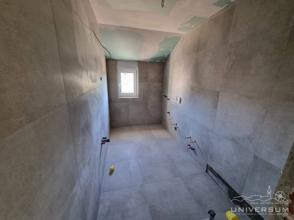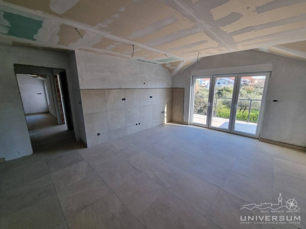 Are you looking for a property in the vicinity of Umag? Take a look at this newly built apartment in Bašania, just a few steps from the sea. Apartment "NUMBER 14", this charming space has a total area of 61 m2 and contains an entrance hall, two comfortable bedrooms, a modern bathroom, a practical storage room, a spacious living room and a kitchen with a dining area that leads to a quiet terrace