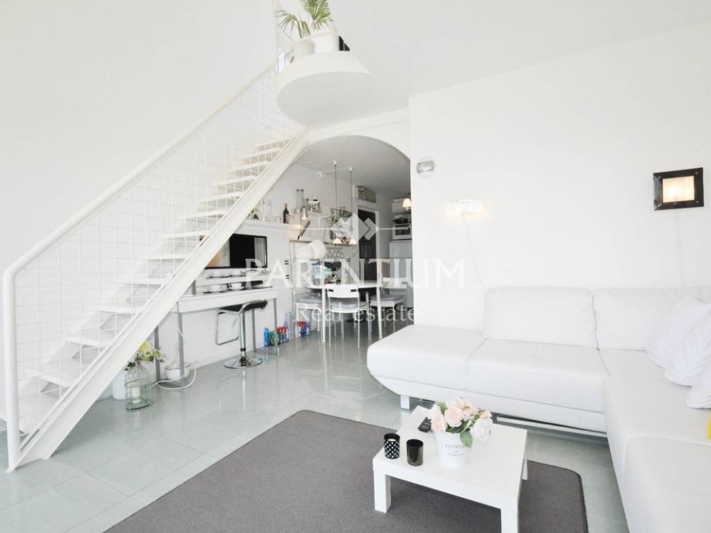 Beautifully renovated apartment of 76m2 for sale. It consists of an entrance hall, kitchen, bathroom bedroom and a spacious and light living room with a large glass wall and exit to the terrace overlooking the greenery and the surrounding places. The apartment also has a gallery with another bedroom and a terrace overlooking the sea.