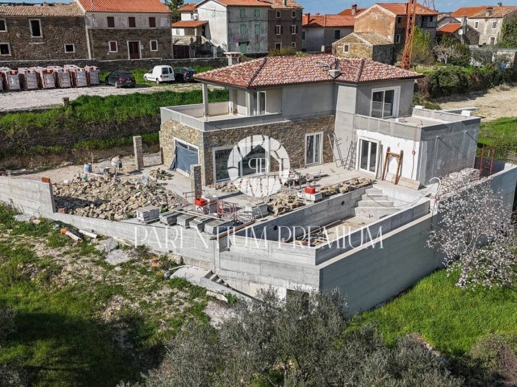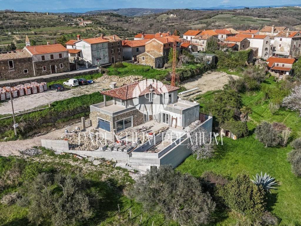 In the vicinity of Buje, driving towards Momjan, on a hill with a beautiful view, this excellently designed villa is being built.