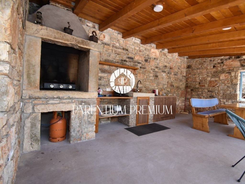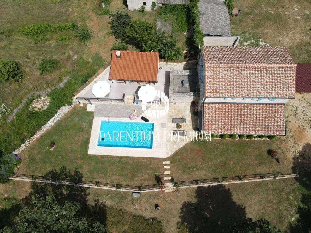 On the beautifully landscaped yard, which offers a beautiful view of nature, there is a summer kitchen, a sunbathing area and a swimming pool.