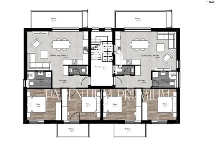 Only 2.5 km from the well-maintained beaches of Poreč, this modern apartment with as many as 2 terraces is located on the 1st floor of a residential building with a total area of 74.04m2.