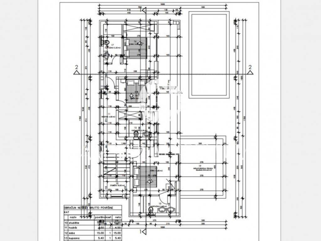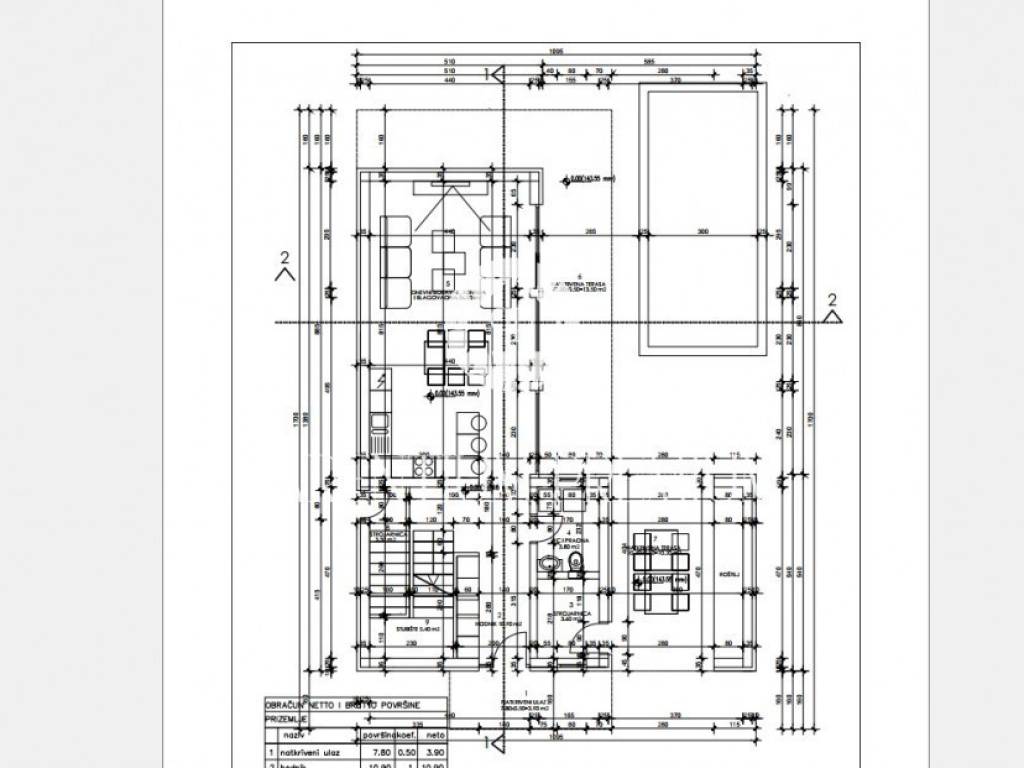 On the ground floor there is an entrance hall, a toilet with a laundry room, a kitchen with a dining room and a large living room with an open space concept with access to a covered terrace, a summer kitchen, a sun deck and a 21m2 swimming pool.