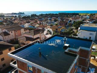 Top quality PVC carpentry with aluminum blinds, burglar-proof and fire-proof entrance doors, first-class floor coverings throughout the apartment, and top-quality sanitary ware and a built-in cistern will be installed.