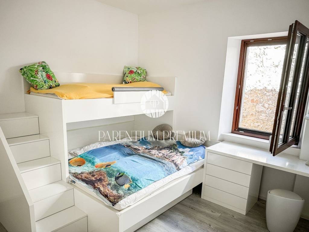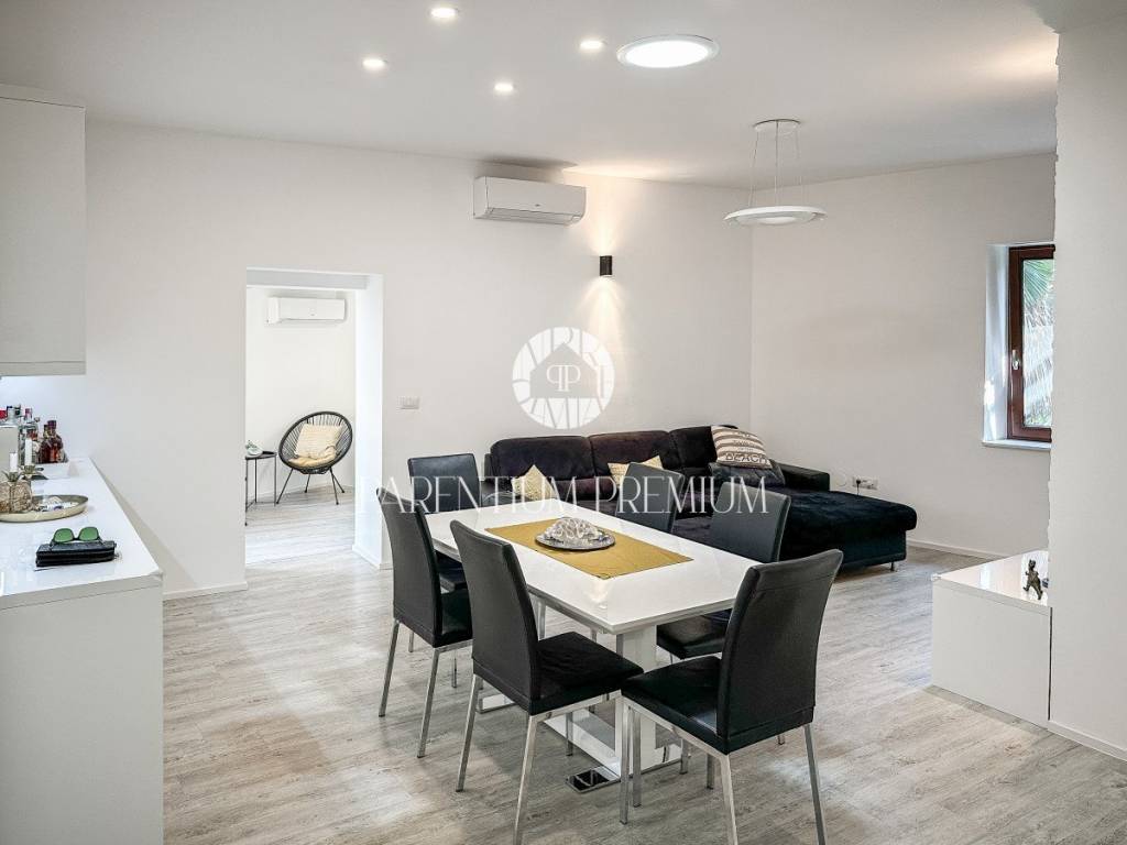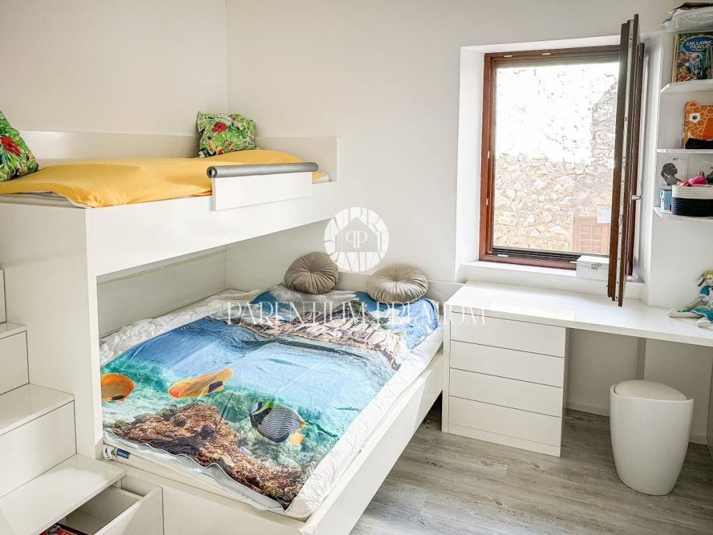 A luxuriously renovated apartment on the 1st floor is for sale in the very center of Poreč, 30m from the sea. The apartment has a total size of 96.47m2, consists of a hallway, a spacious living room with a dining room and a separate kitchen, three bedrooms and two bathrooms. During the renovation, care was taken to preserve the original historical details that adorn the interior of the house. The kitchen and bathrooms have underfloor heating, and air conditioning is in all rooms. The apartment has a video intercom, there are mosquito nets on the windows. The apartment was completely renovated with top-quality materials in 2017. Exclusive restaurants and everything you need are within walking distance of the apartment. Don't miss the opportunity to buy your dream apartment in the old town of Poreč or as an investment for tourist purposes.