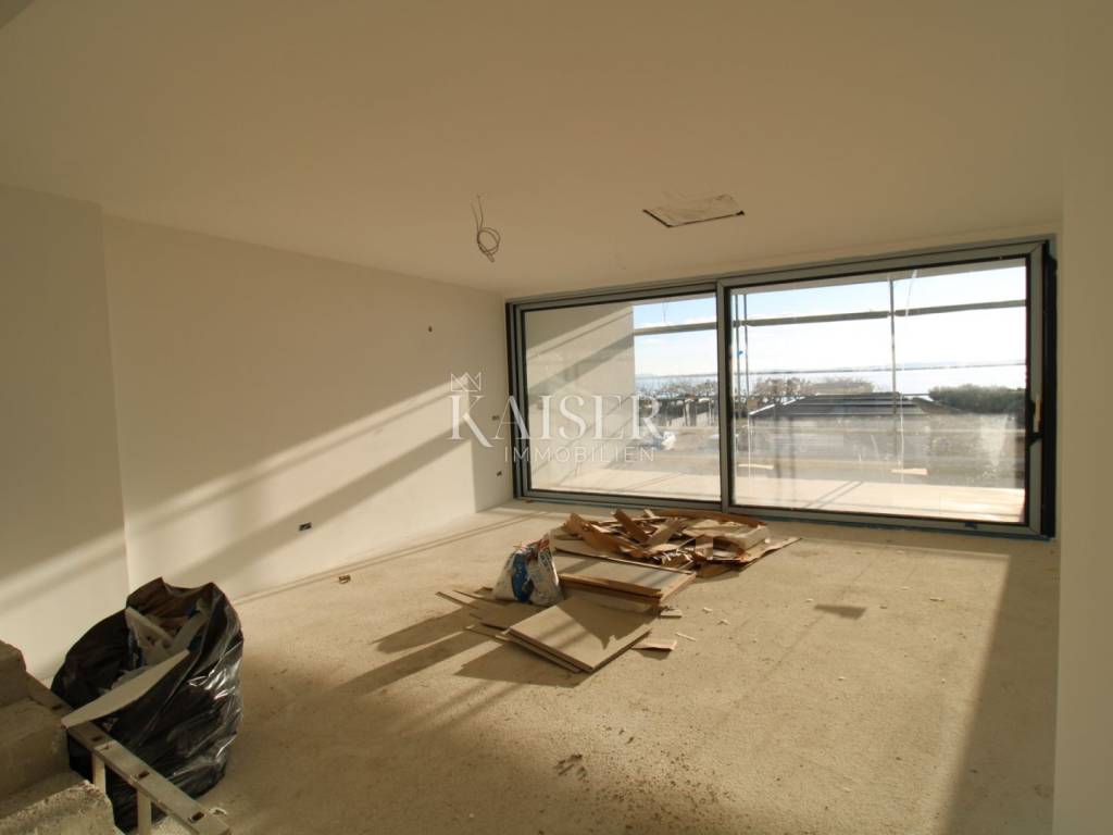 A duplex apartment in a modern residential building with a total of two floors, located in a quiet and well-maintained part of Privlaka near Zadar, represents an exceptional opportunity for luxurious living by the sea or a secure investment for vacation and tourist rental. On the first floor of the building there are four duplex apartments, designed to provide maximum privacy, comfort and an exclusive Mediterranean lifestyle. The apartment is south-facing, extremely sunny throughout the day, with panoramic views of the sea and islands. It is located only 40 meters from the beach and promenade, which allows daily enjoyment in the immediate vicinity of the sea, with complete peace and a relaxed atmosphere.