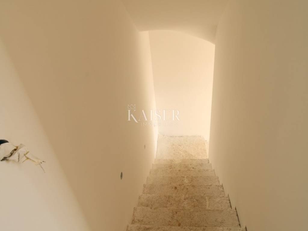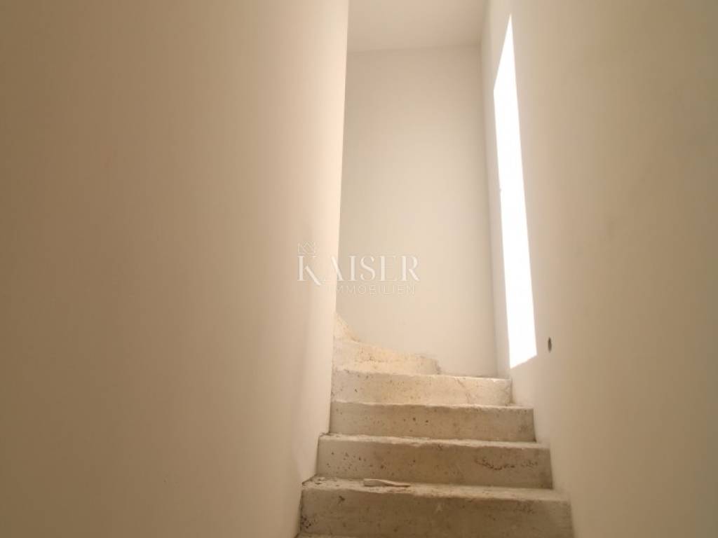 The entrance part of the apartment is located on the first floor, where there is a spacious living room with kitchen and dining room and access to the loggia. Internal stairs lead to the second floor, where the sleeping part of the apartment with additional rooms is located. A special value of this property is the spacious roof terrace connected to the sleeping area of the apartment by stairs, which offers an open panoramic view of the sea and the Zadar archipelago.