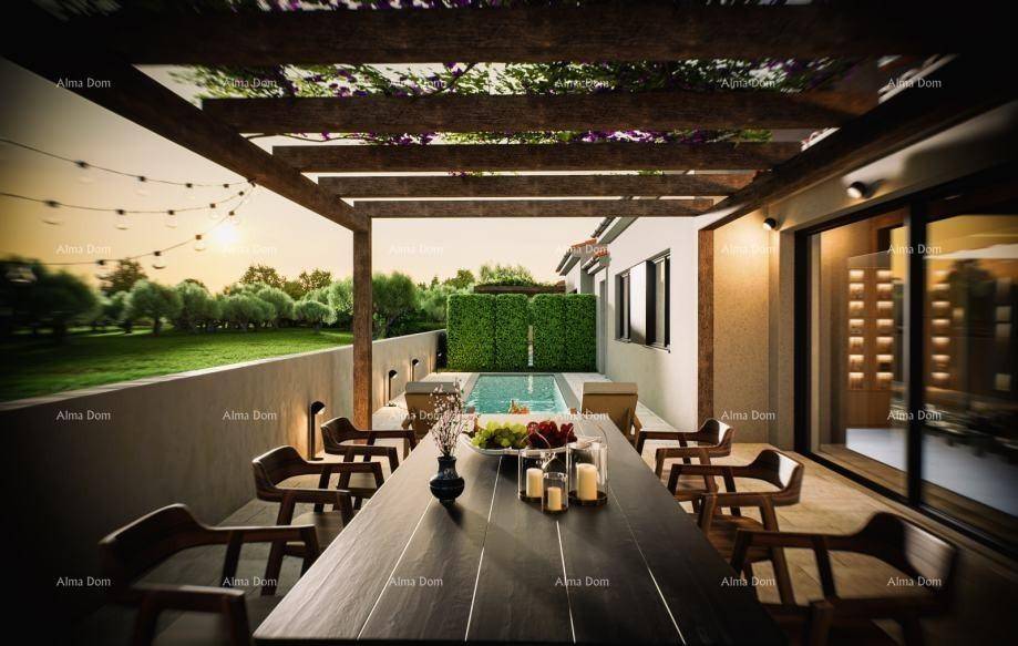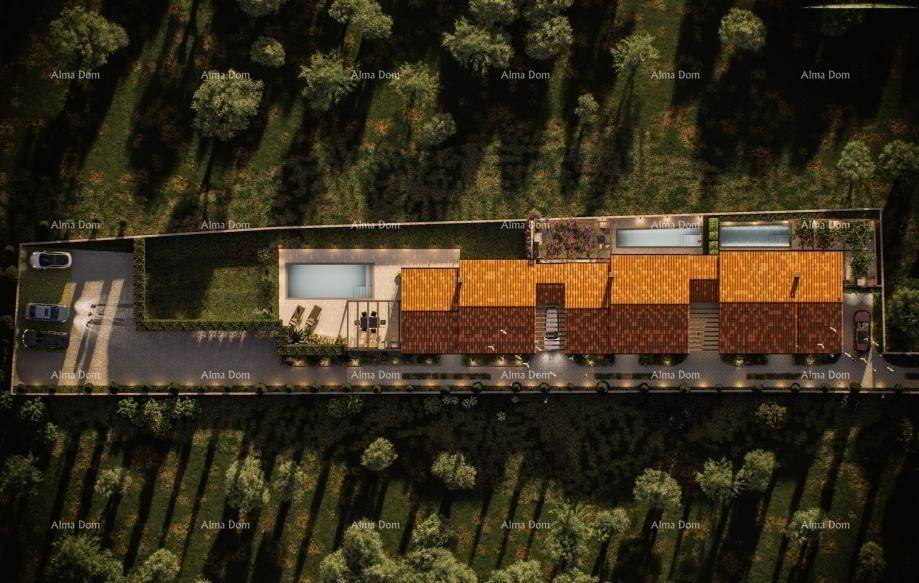 In the heart of picturesque Kaštelir, just 7 km from the sea, lies a modern complex of three villas, each with its own heated pool, covered terrace, and top-notch amenities. These carefully designed homes offer the perfect blend of luxury, functionality, and complete privacy.